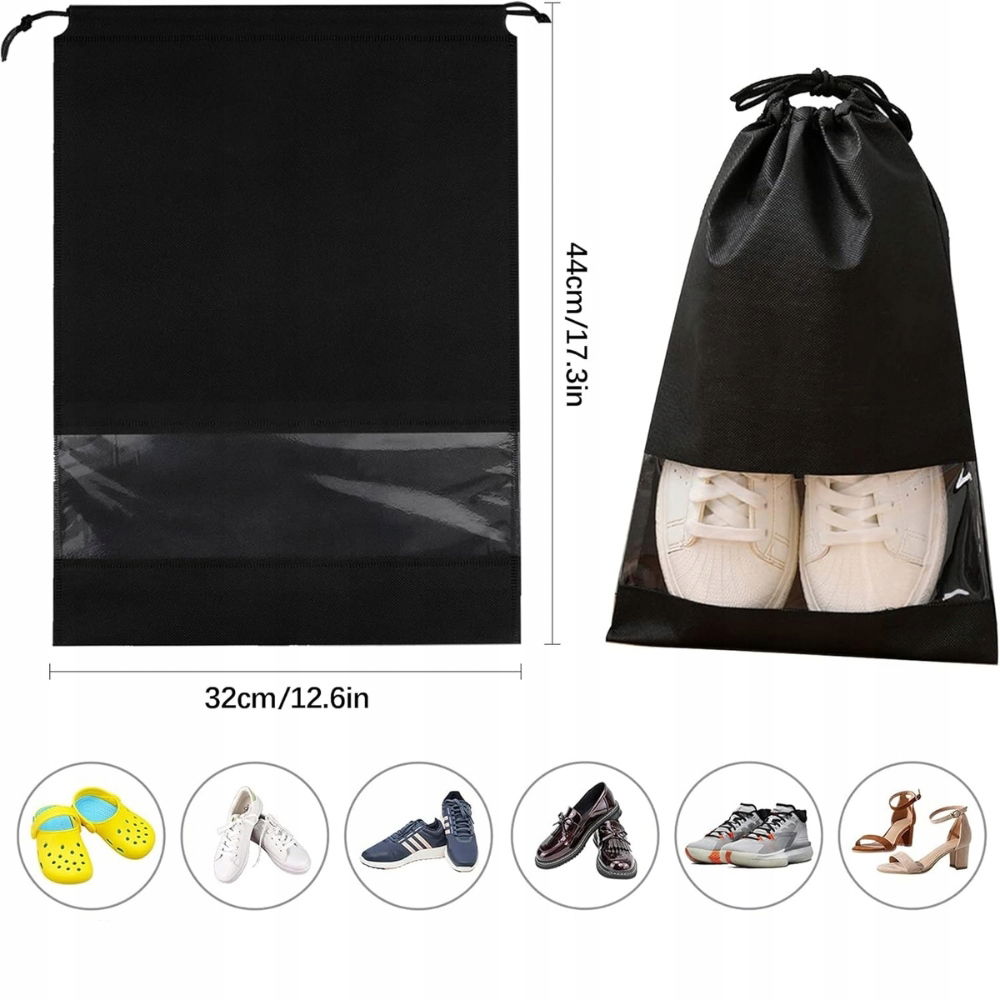 To nie tylko torby na buty! Ich uniwersalny rozmiar i praktyczna konstrukcja ze ściągaczem sprawiają, że mogą służyć jako torby na kosmetyki, bieliznę, akcesoria sportowe, pranie, torby prezentowe czy worki do organizacji bagażu. Idealne zarówno do użytku domowego, jak i w podróży.