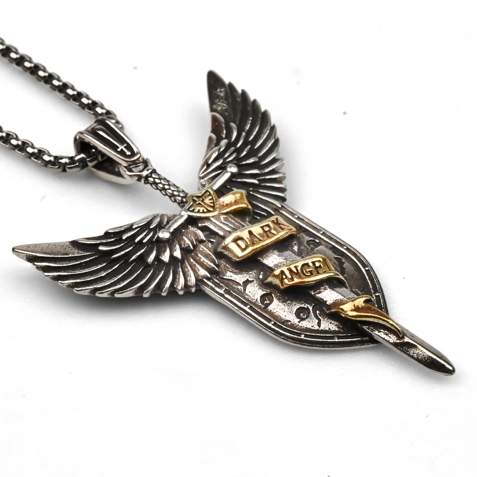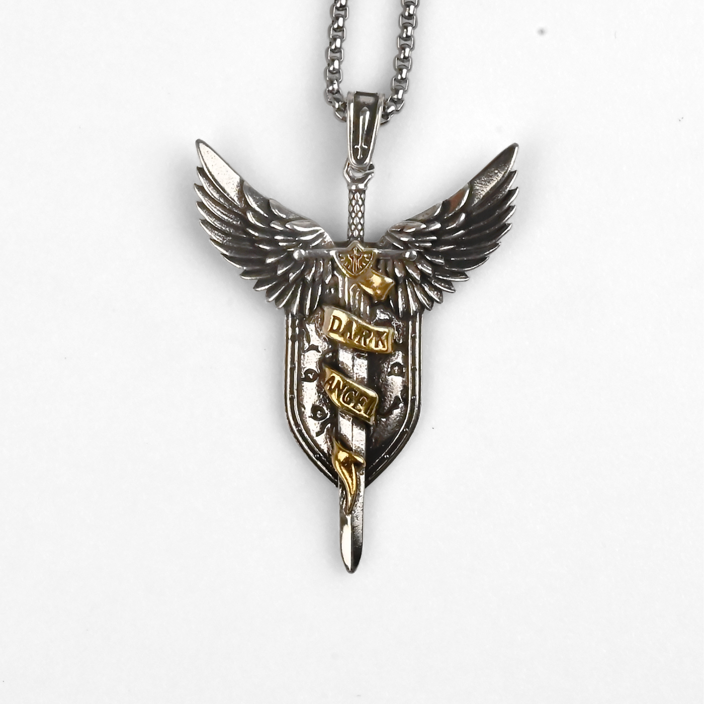 Wykuty w mroku odległej przyszłości, ten brelok-wisiorek Dark Angels to kwintesencja tajemniczości i chwały jednej z najbardziej zagadkowych i czczonych Zakonów Imperium. Stanowiąc symbol nieustannej czujności i wiecznej pokuty, ten kolekcjonerski przedmiot z uniwersum Warhammer 40k to obowiązkowa pozycja dla fanów Pierwszego Legionu. Wisiorek o długości 5 cm przedstawia charakterystyczny motyw skrzydlatego miecza, wpisanego w formę tarczy – nawiązującej zarówno do obrony, jak i zakonnej dyscypliny. Wykonany z trwałego metalu w dwutonowym wykończeniu, łączy postarzaną srebrzystą kolorystykę skrzydeł i ostrza ze złotymi wstęgami z napisem „DARK ANGEL”. Detale, takie jak starannie wyrzeźbione pióra czy grawerowane powierzchnie tarczy, nadają całości głębi i charakteru. Dzięki dołączonemu łańcuszkowi może być noszony jako wisiorek lub eksponowany jako ozdoba kolekcjonerska. Ten kolekcjonerski przedmiot Dark Angels łączy ikoniczny design z głębokim zakorzenieniem w tragicznej i fascynującej historii Zakonu. To wyjątkowy element oficjalnego merchu Warhammer 40k dla każdego oddanego fana.