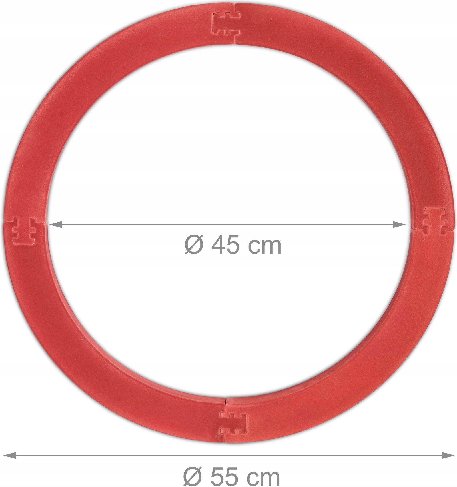 Osłony Relaxdays pasują do tarcz o średnicy 45 cm. Przed zakupem zaleca się zmierzenie tarczy, ponieważ różne marki mogą mieć nieco inne wymiary zewnętrzne. Do prawidłowego osadzenia tarczy w pierścieniu potrzebna jest minimalna siła — tylko wtedy zapewniona jest maksymalna ochrona.