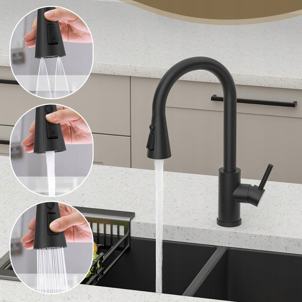 DAYONE Bateria kuchenna czarna matowa z wyciąganą wylewką SUS304