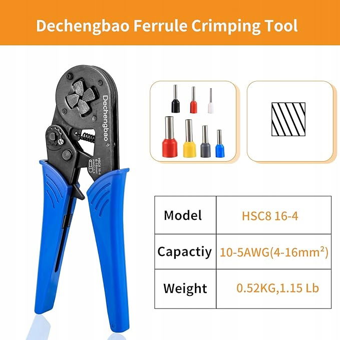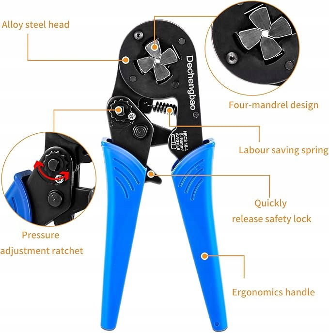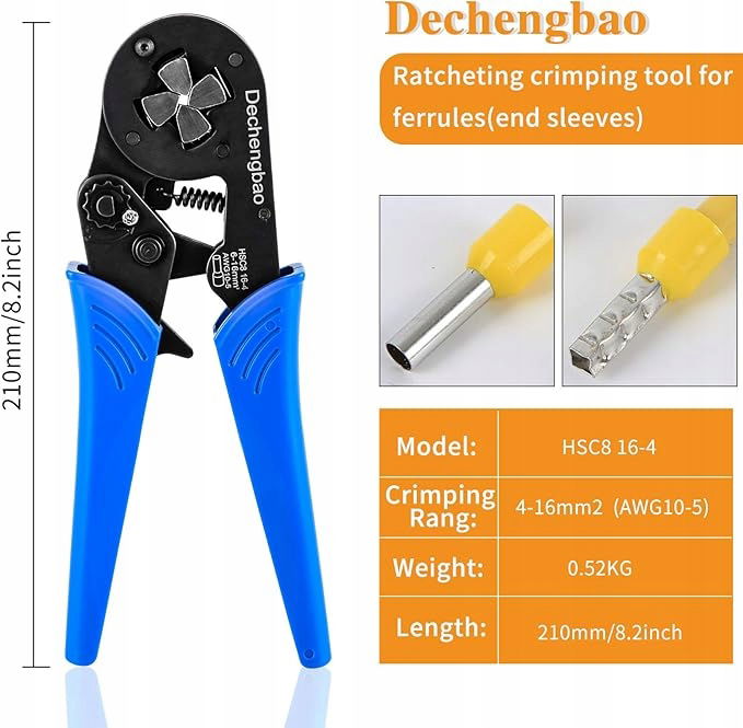 Dechengbao Szczypce zaciskarka do zaciskania końcówek przewodów 0,08-16 mm²