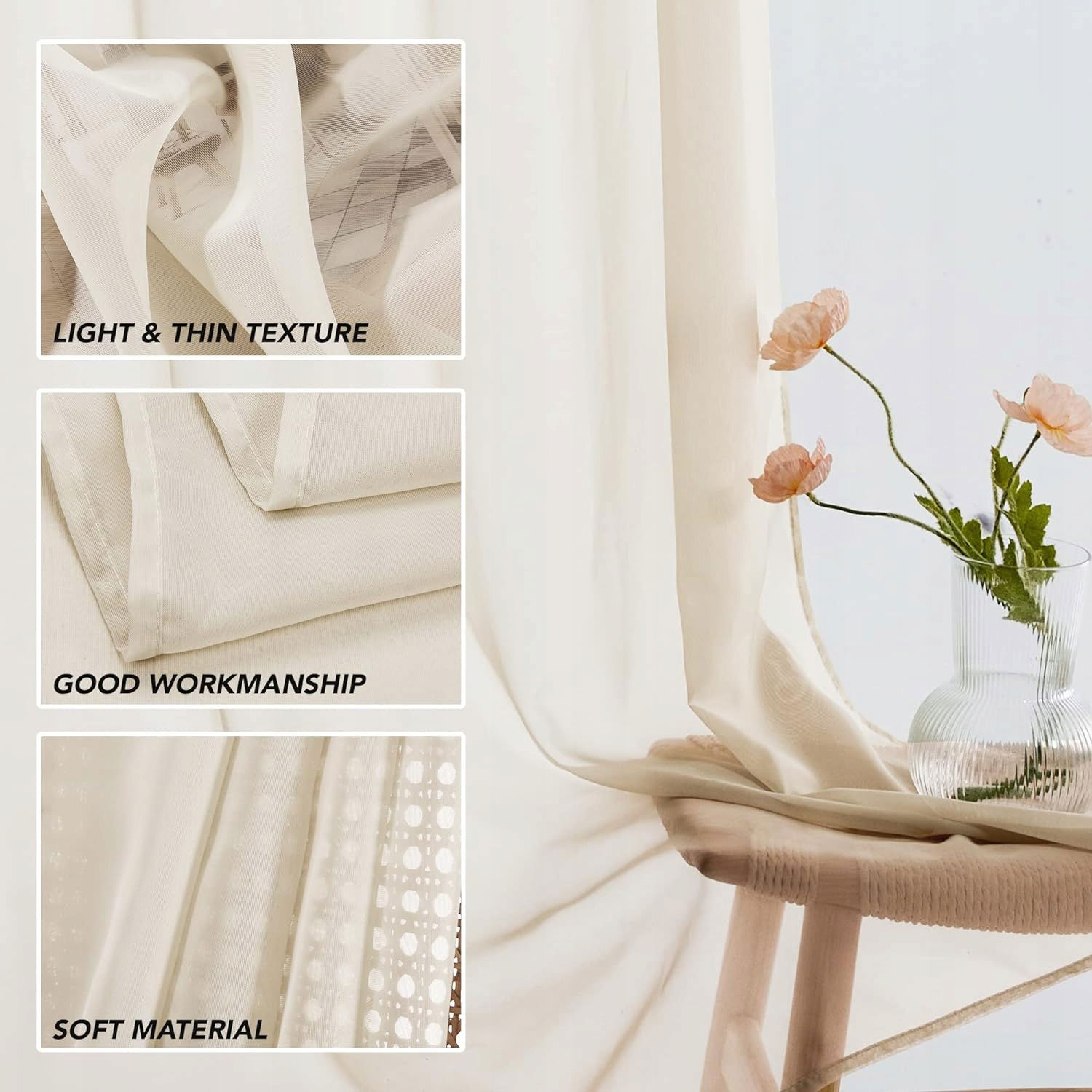 Deconovo 140x290 CM Zasłony okienne z przezroczystego woalu, nowoczesne zasłony wewnętrzne z oczkami Beżowy - 1 szt.