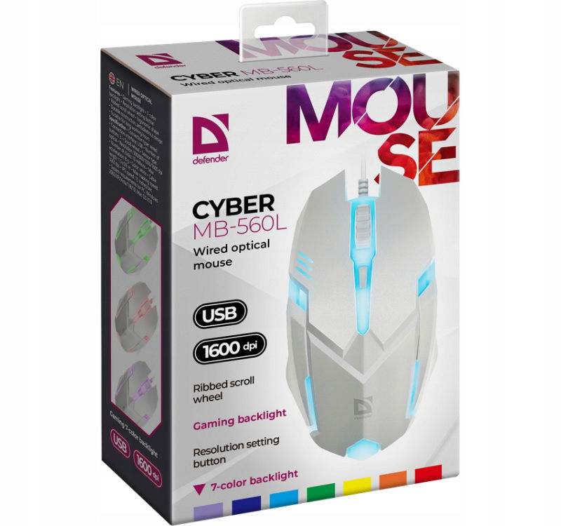 DEFENDER MYSZ GAMINGOWA CYBER MB-560L BIAŁA 1200DPI OPTYCZNA PRZEWODOWA