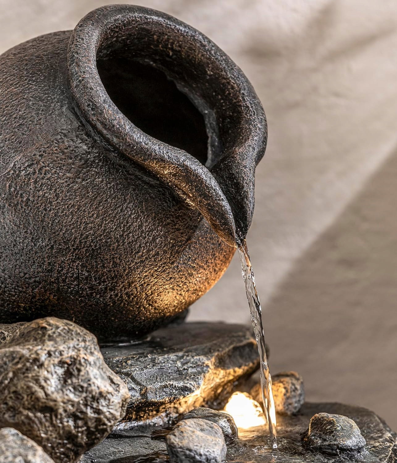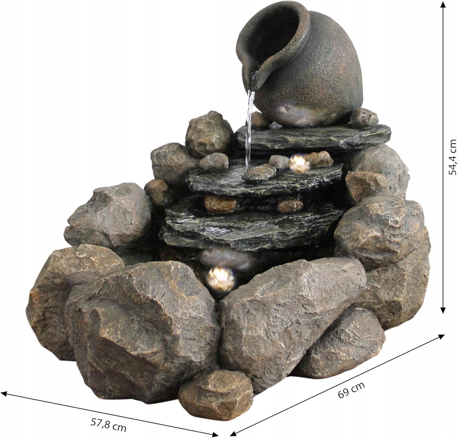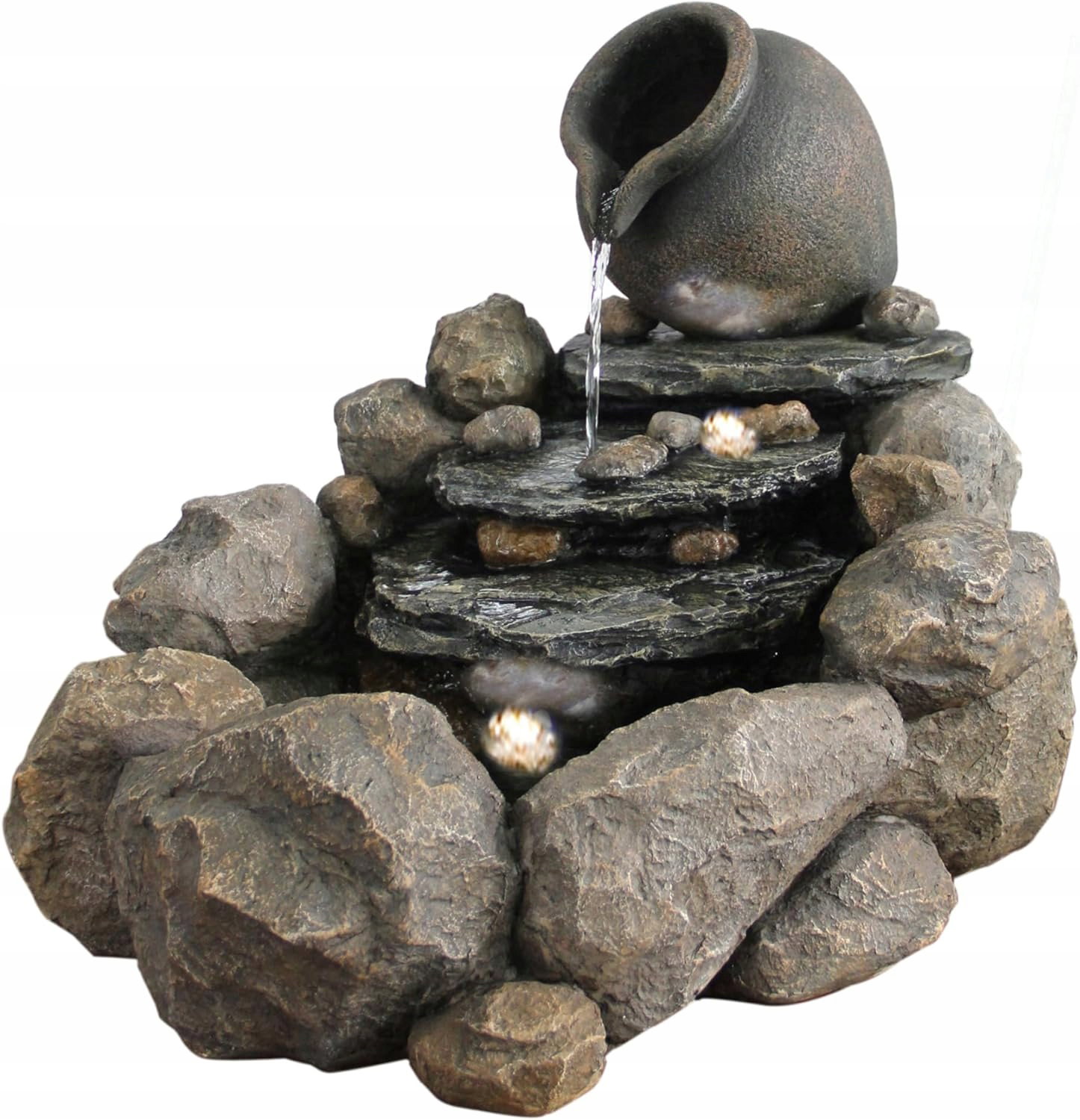 Duża fontanna ogrodowa wykonana z wytrzymałej żywicy poliestrowej o wyglądzie kamienia