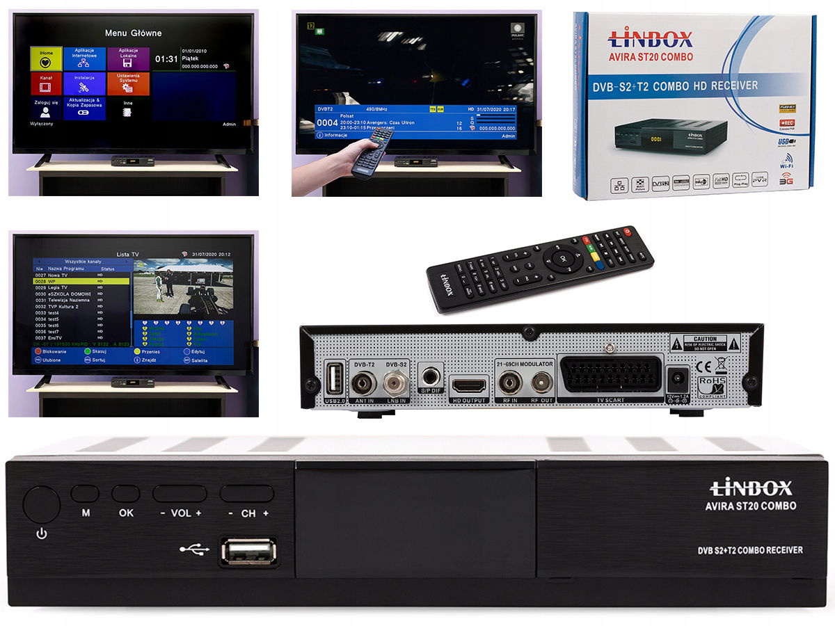 Dekoder DVB-S2 DVB-T2 USB FULL HD WIFI PVR Linbox Avira ST20 COMBO