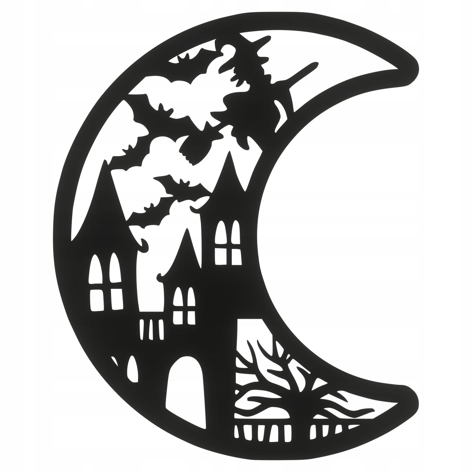 DEKOR ZAWIESZKA CZARNY KSIĘŻYC MIASTO WIEDŹMY HALLOWEEN OZDOBA BAZA 15CM