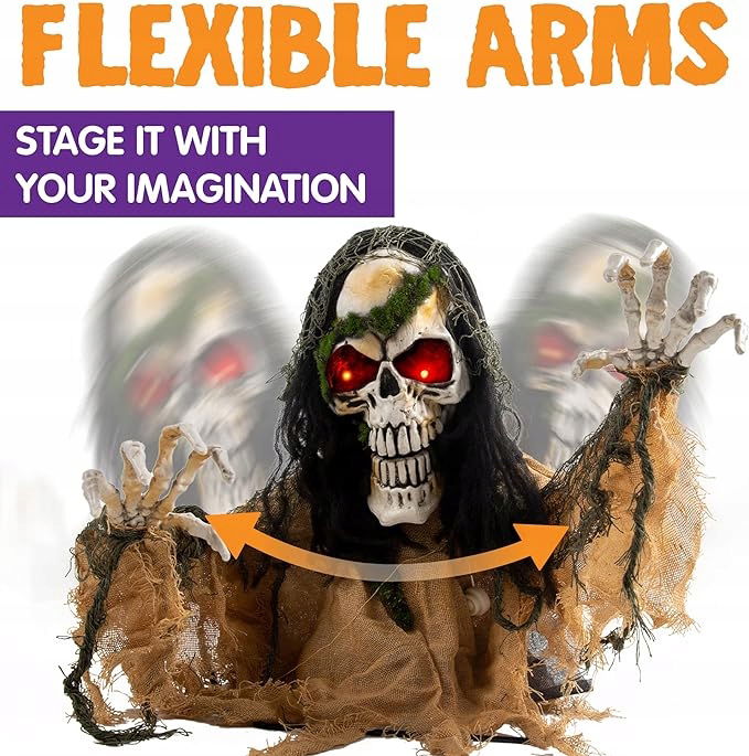 JOYIN Dekoracja na Halloween .Animowany przełomowy zombie, świecący szkielet Zombie przełomowy rekwizyt z przerażającym dźwiękiem na Halloween na zewnątrz, trawnik, podwórko, dekoracja patio, dekoracja nawiedzonego domu