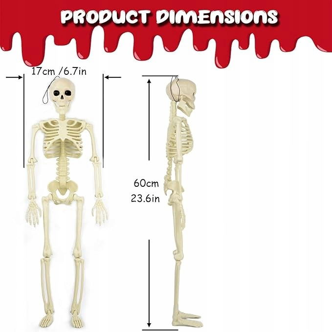 2 opakowania 60 cm szkielety na Halloween, ruchome stawy szkielet dekoracja na Halloween