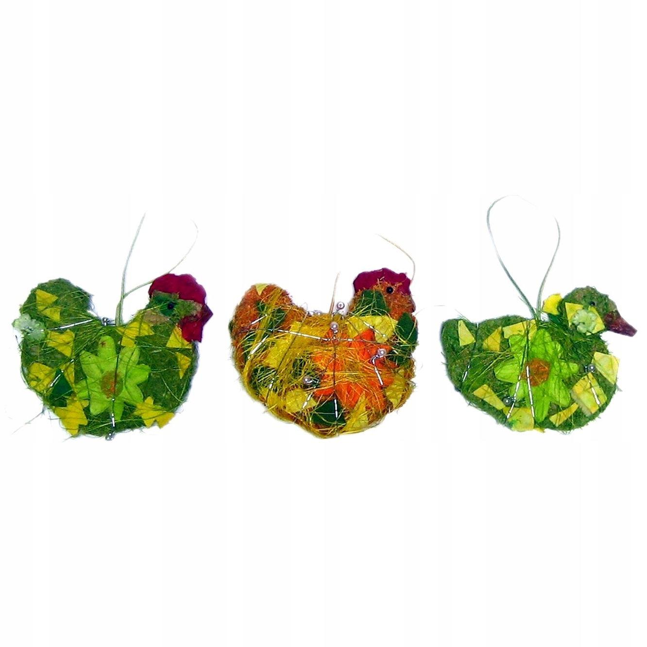 Dekoracja wielkanocna sizal wisząca, 8-9 cm, motyw: kura/jajko.