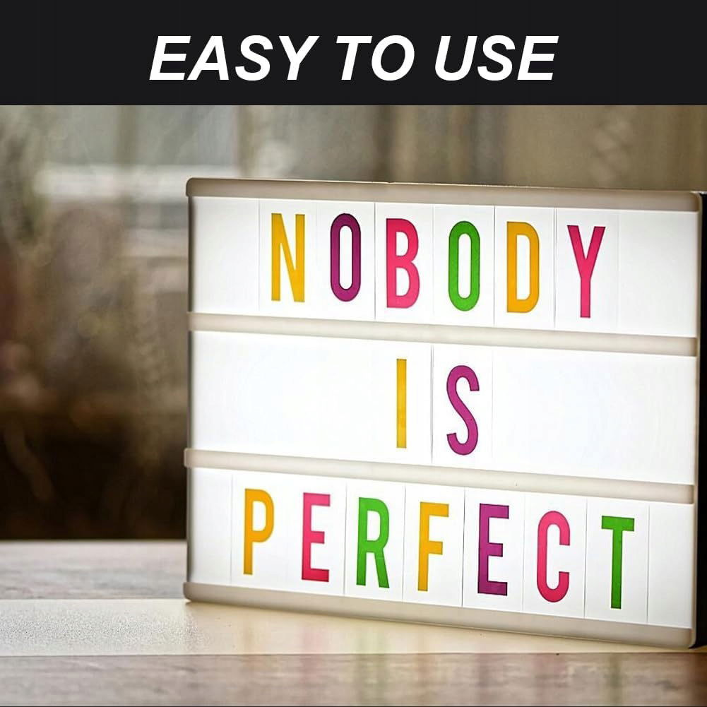 - Łatwy w użyciu: wystarczy wsunąć kartę z literami do otworów na podświetlaną tablicę kinową A4 z przodu; odległość można regulować przesuwając kartę z literami, aby utworzyć własną wiadomość.