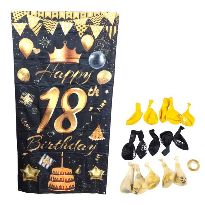 Dekoracje na 18 urodziny czarne zoto baner