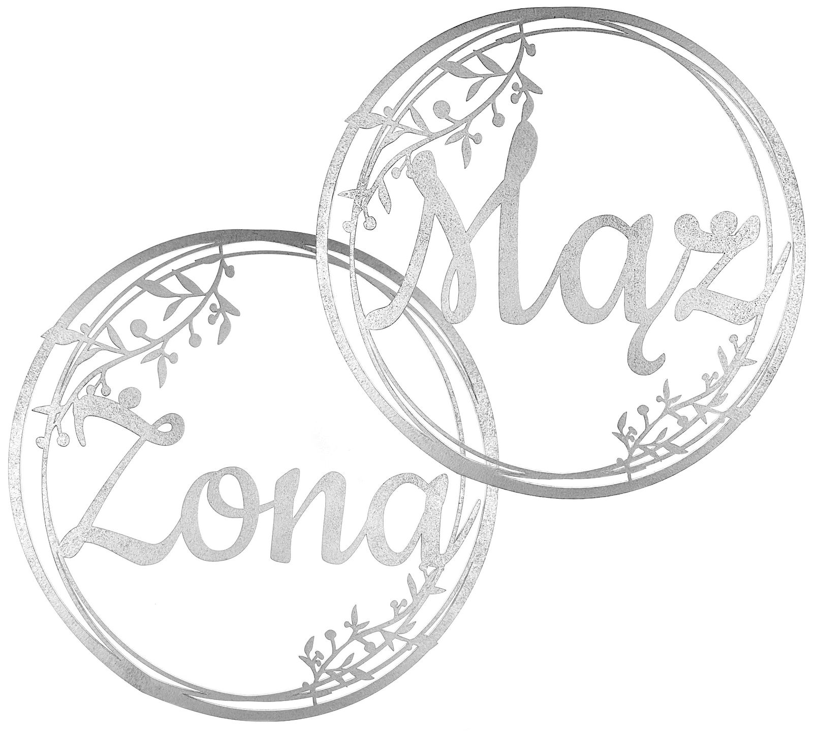 Dekoracje na wesele koła w kolorze Srebrnym Żona oraz Mąż o wymiarach ok. 40x40 cm.