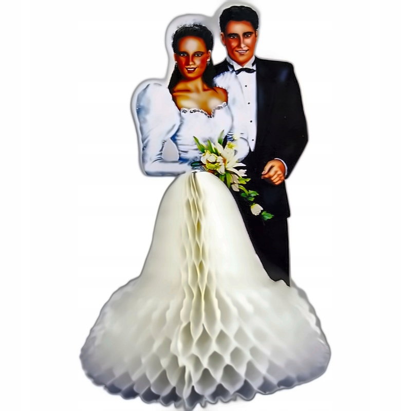 Efektowna rozetka dekoracyjna z motywem Nowożeńców o wymiarach 17 x 29 cm. Idealna na wesela, śluby i przyjęcia tematyczne. Wykonana z wysokiej jakości materiałów, zapakowana w opakowanie ochronne. Doskonały dodatek do wystroju sali weselnej.
