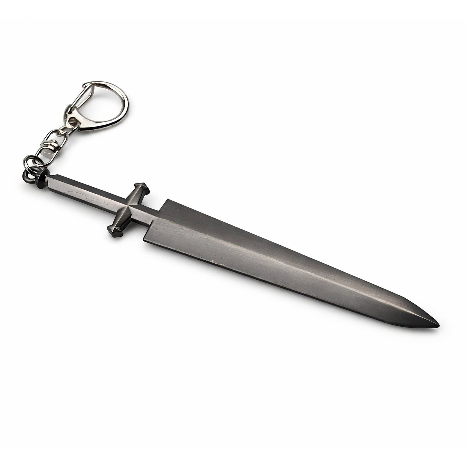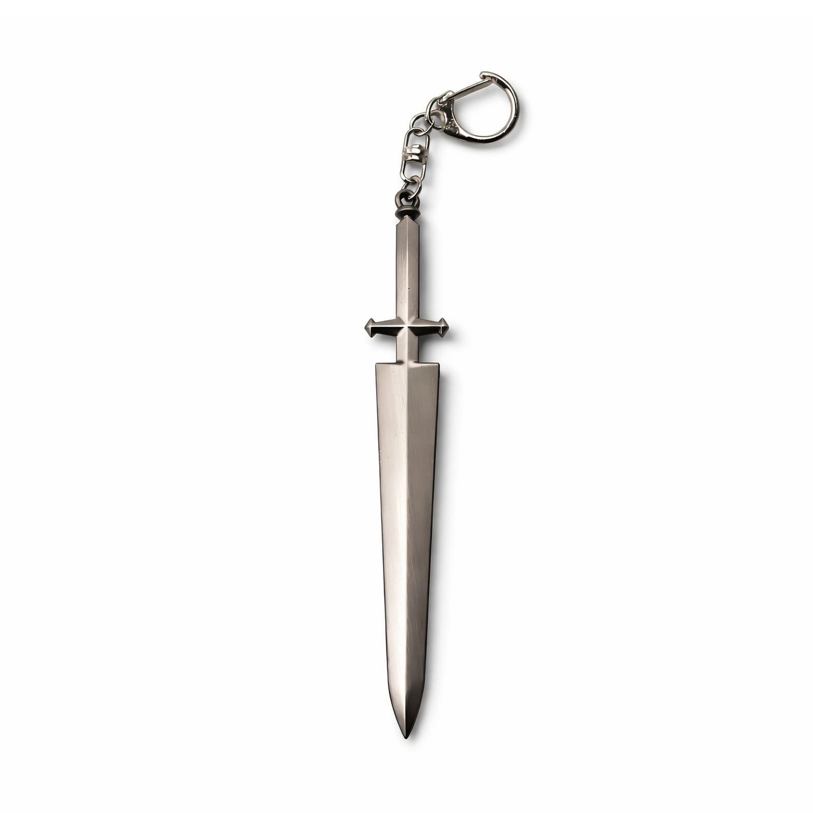 Rozpacz Cienia wydaje się dziwnie… przenośna. Ta 16-centymetrowa replika Miecza Demonów Lichta została odlana z wytrzymałego metalu, oddając mroczną urodę ostrza dzięki ciemno wypolerowanemu wykończeniu i skomplikowanym detalom wzdłuż rowka. Elegancki czarny uchwyt do kluczy zabezpiecza miniaturową wersję, pozwalając Ci nosić fragment destrukcyjnej mocy grimorio Black Clover, gdziekolwiek się udasz. Od plecaków po klucze, zaprezentuj ten potężny symbol zakazanej magii i uznaj ciężar przeklętego pochodzenia.