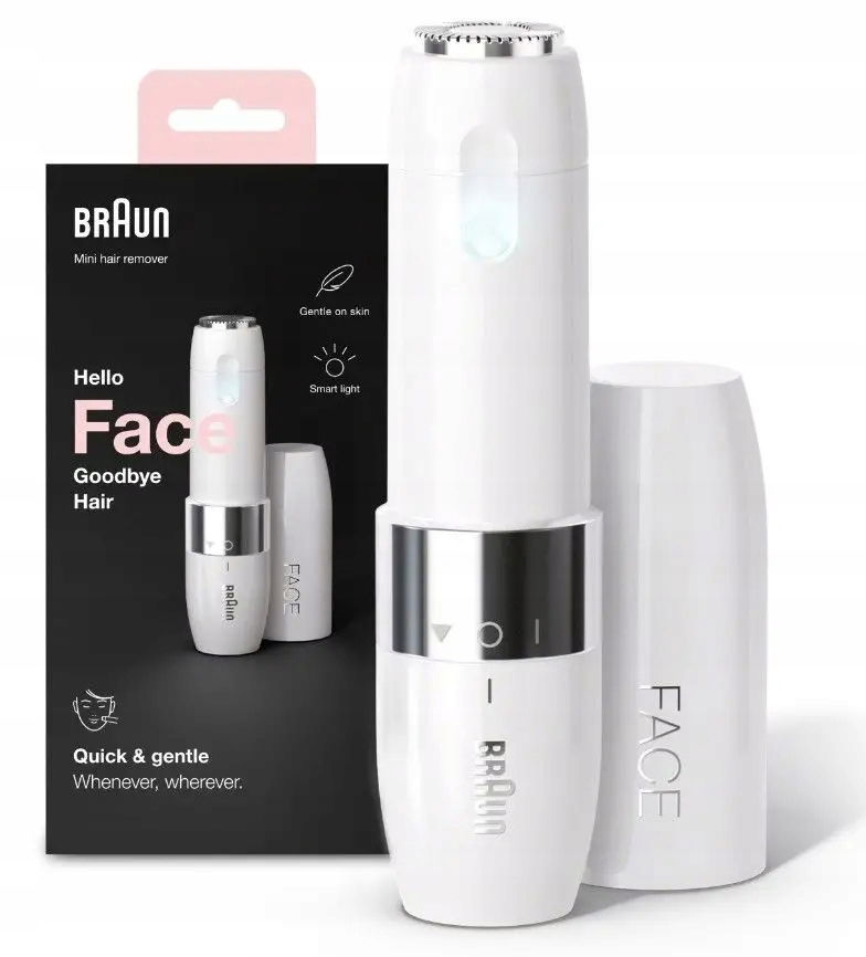 Braun Face Mini FS1000 to dyskretny, elektryczny depilator do włosków na twarzy, stworzony specjalnie dla kobiet. Usuwa nawet najkrótsze włoski szybko, delikatnie i bez bólu, zapewniając idealnie gładką skórę zawsze wtedy, gdy tego potrzebujesz.