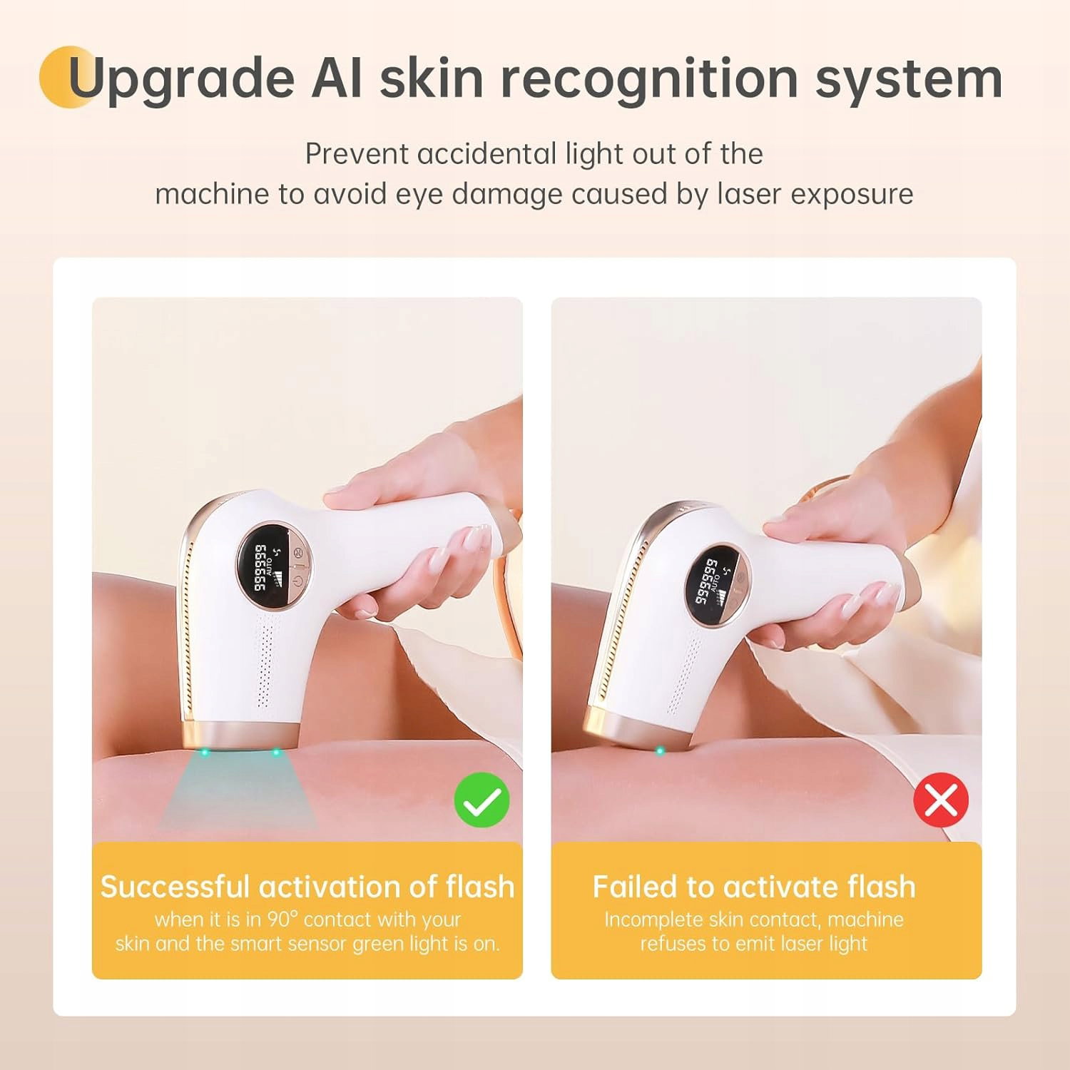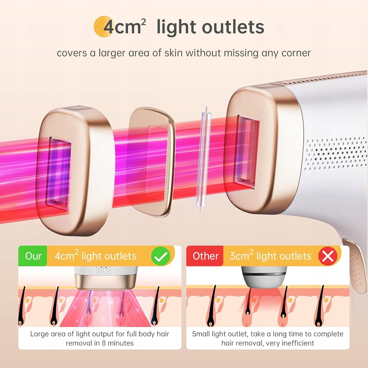 ✨Duża szyba błyskowa o powierzchni 4,0 m² może pokryć większy obszar skóry, dzięki czemu cały proces usuwania włosów jest szybszy, bez utraty kąta, co znacznie poprawia wrażenia z usuwania włosów w domu. Ilość 999 953 błysków zapewnia wieloletnie użytkowanie.
