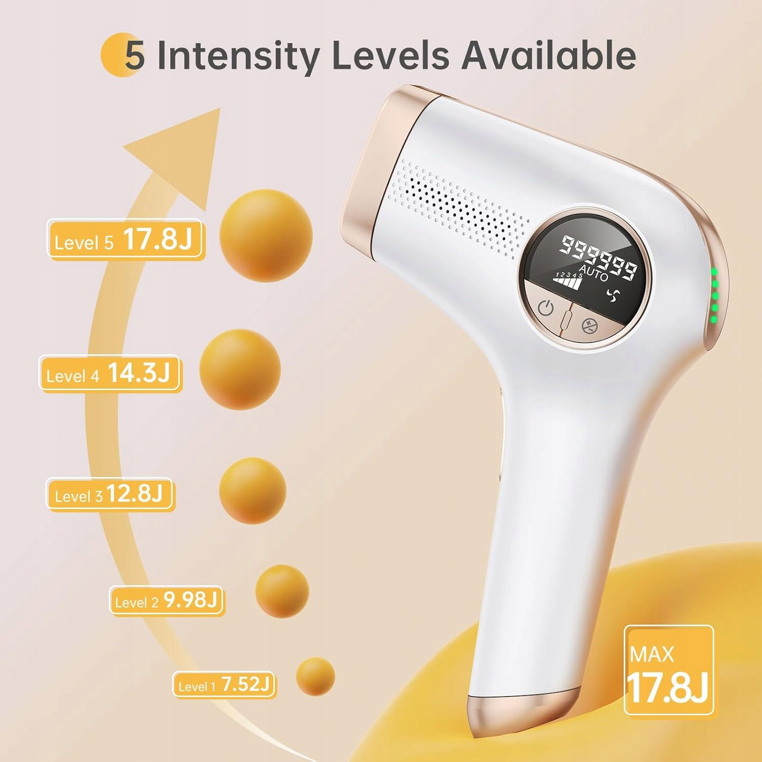 ✨Oferuje 5 poziomów mocy – wystarczy nacisnąć przycisk wł./wył., aby ustawić poziom mocy, który najlepiej pasuje do Twojej skóry.