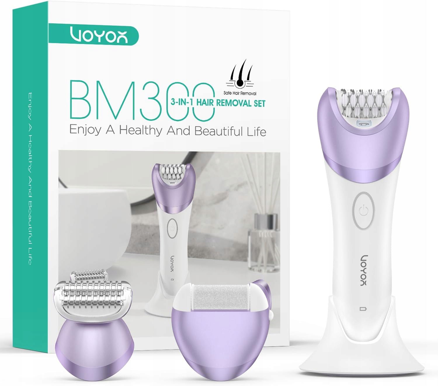 ✅ Dołączone części składowe: 1 x korpus urządzenia VOYOR BM300, 1 x głowica do depilacji, 1 głowica goląca 3 w 1, 1 głowica zapobiegająca zrogowaceniom, 1 x podstawka ładująca, 1 x kabel USB do ładowania, 1 x szczotka do czyszczenia, 1 x instrukcja obsługi