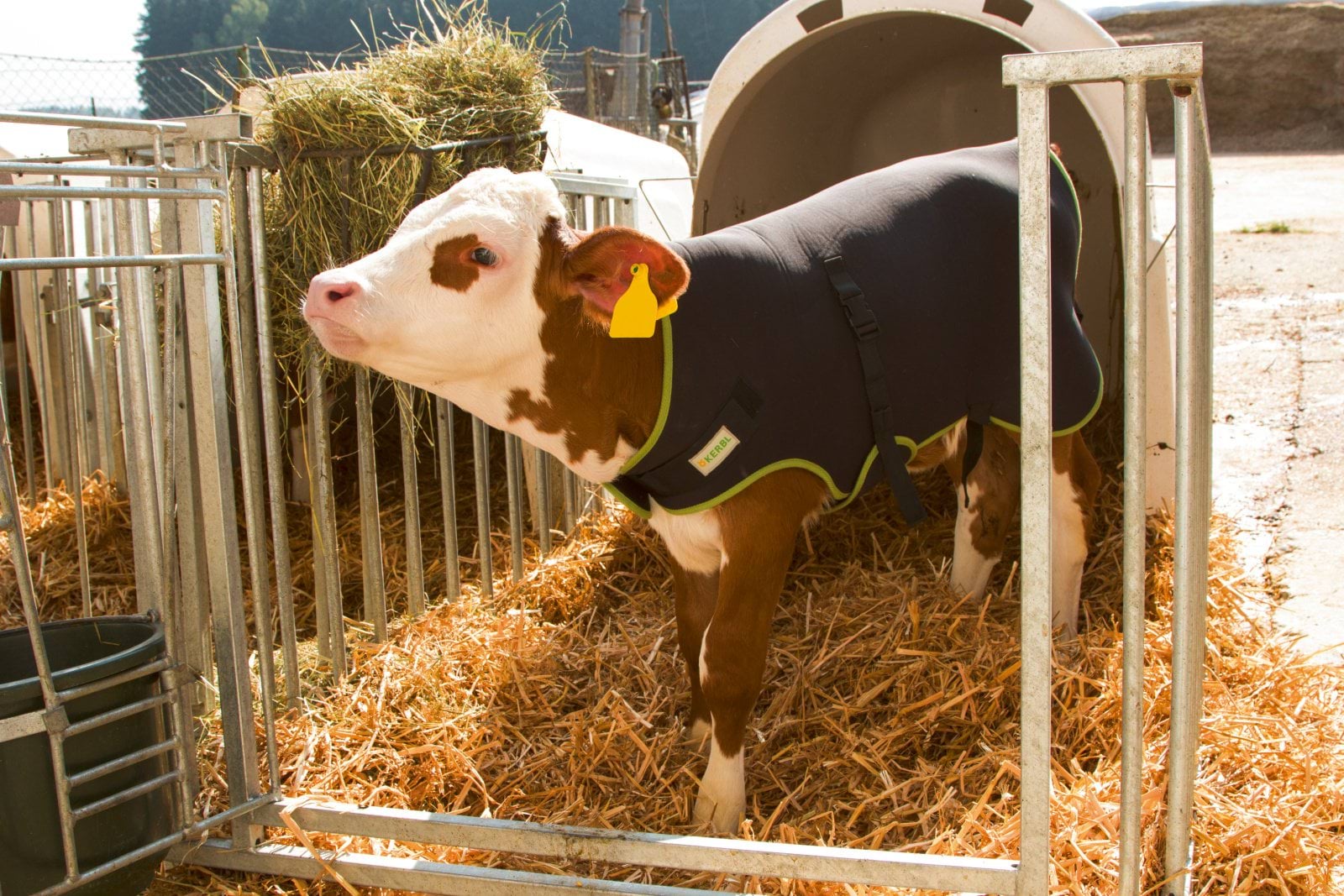 Cielęta zazwyczaj noszą derki dla cieląt przez 3 do 4 tygodni, a w razie potrzeby dłużej