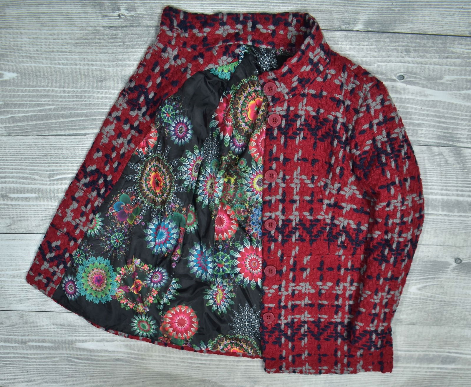 DESIGUAL 17wwewh9 Czerwony Średniej Długości Płaszcz z Domieszką Wełny 46