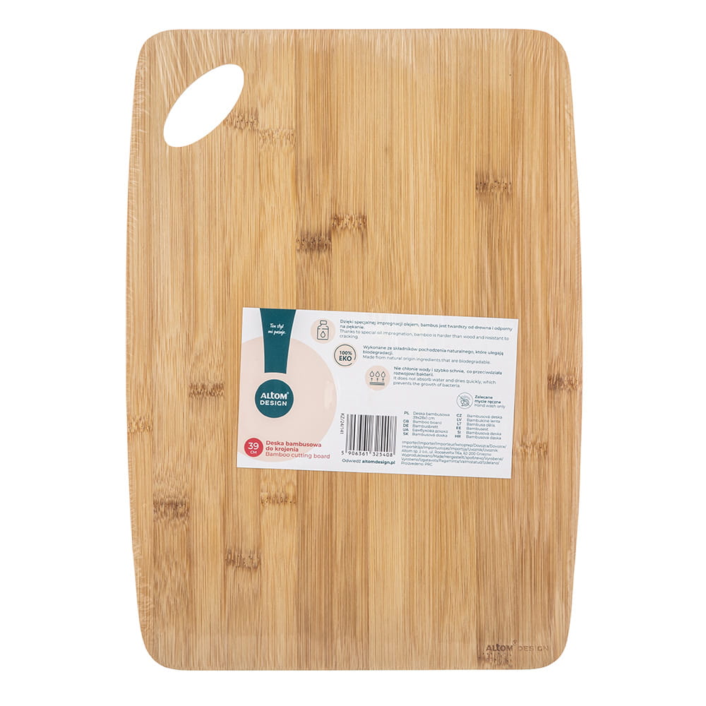 Organic deska bambusowa 39x28x1cm to produkt, który łączy w sobie naturalność, trwałość i wygodę użytkowania. Wybierając naszą deskę, wspierasz zrównoważony rozwój i dbasz o środowisko, jednocześnie ciesząc się wysoką jakością i estetyką w swojej kuchni.
