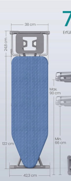 - ✴️Regulacja wysokości: 7-stopniowa regulacja wysokości pozwala wybrać idealną wysokość roboczą. Dzięki temu zawsze możesz prasować ergonomicznie.