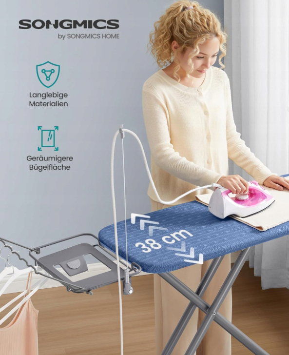 - ✴️Podstawka pod żelazko, uchwyt na kabel i haczyk: Duża podstawka zapewnia miejsce na tradycyjne żelazka i stacje parowe. Dzięki elastycznemu uchwytowi na kabel, uciążliwe kable pozostają na swoim miejscu. Wyprasowane ubrania można powiesić na składanym haczyku.