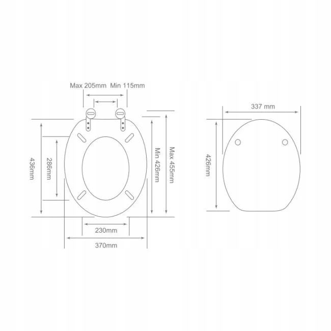 Ta deska sedesowa pasuje do wszystkich standardowych WC dzięki regulowanym zawiasom.