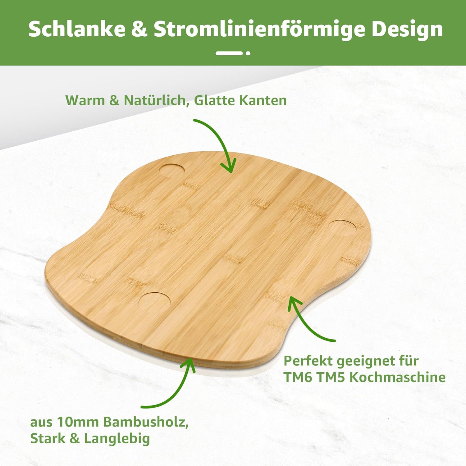 Wykonana z naturalnego bambusa, gwarantuje trwałość i wytrzymałość. Dzięki rowkom na nóżki Thermomix, Twój robot będzie stabilny nawet przy dużych prędkościach.