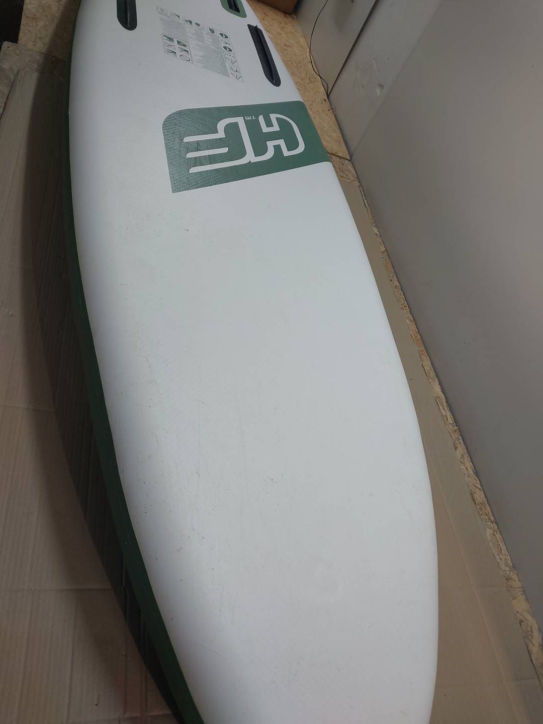 DESKA SUP JEST UŻYWANA I MOŻE WYKAZYWAĆ PEWNE ŚLADY UŻYTKOWANIA, TAKIE JAK ZABRUDZENIA I PRZETARCIA NA GÓRNEJ CZĘŚCI DESKI SUP. NALEŻY ZAZNACZYĆ, ŻE BRAKUJE WIOSŁA I 3 PŁETW, KTÓRE NORMALNIE ZNAJDUJĄ SIĘ W ZESTAWIE. KUPUJĄC TEN PRODUKT OTRZYMASZ POMPKĘ, ZRYWKĘ, TORBĘ NA SUP ORAZ ZESTAW NAPRAWCZY.