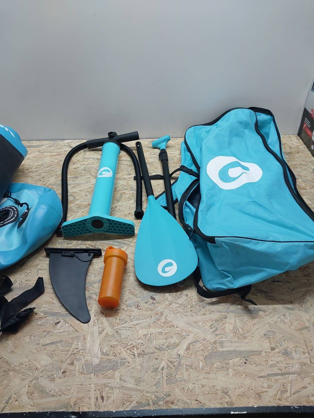 Kompletny zestaw z akcesoriami. Zestaw zawiera wszystkie ważne elementy do wiosłowania. W zestawie deska, wiosło, linka bezpieczeństwa do kostek (leash), pompka i torba premium do noszenia.