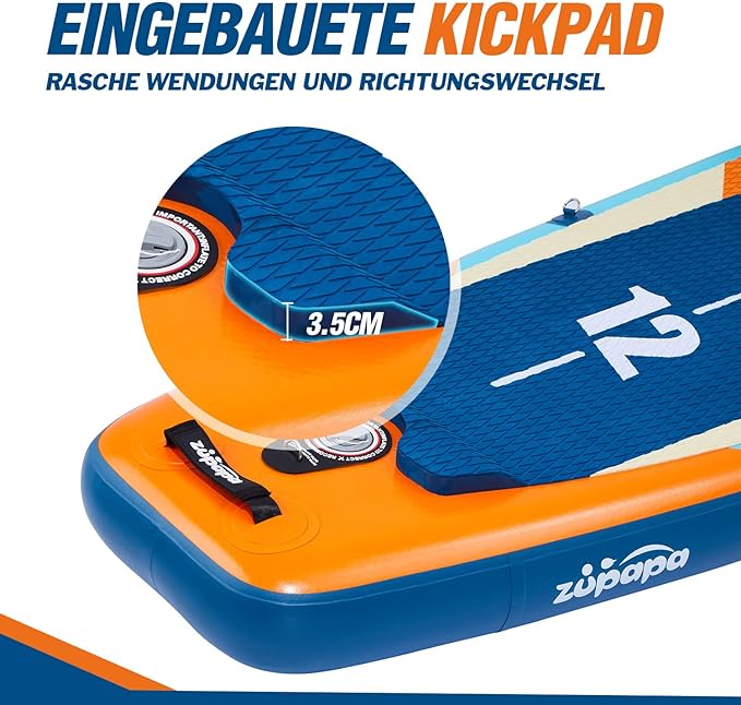 Nadmuchiwana deska Zupapa ma wymiary 366 x 84 x 15,24 cm, jest większa i stabilniejsza oraz ma większą objętość niż inne deski, odpowiednia dla początkujących do zabawy i cieszenia się życiem w słodkiej wodzie, z łatwością udźwignie 158 kg i jest idealna do surfingu, wędkowania, jogi lub do transportu dzieci i psy.