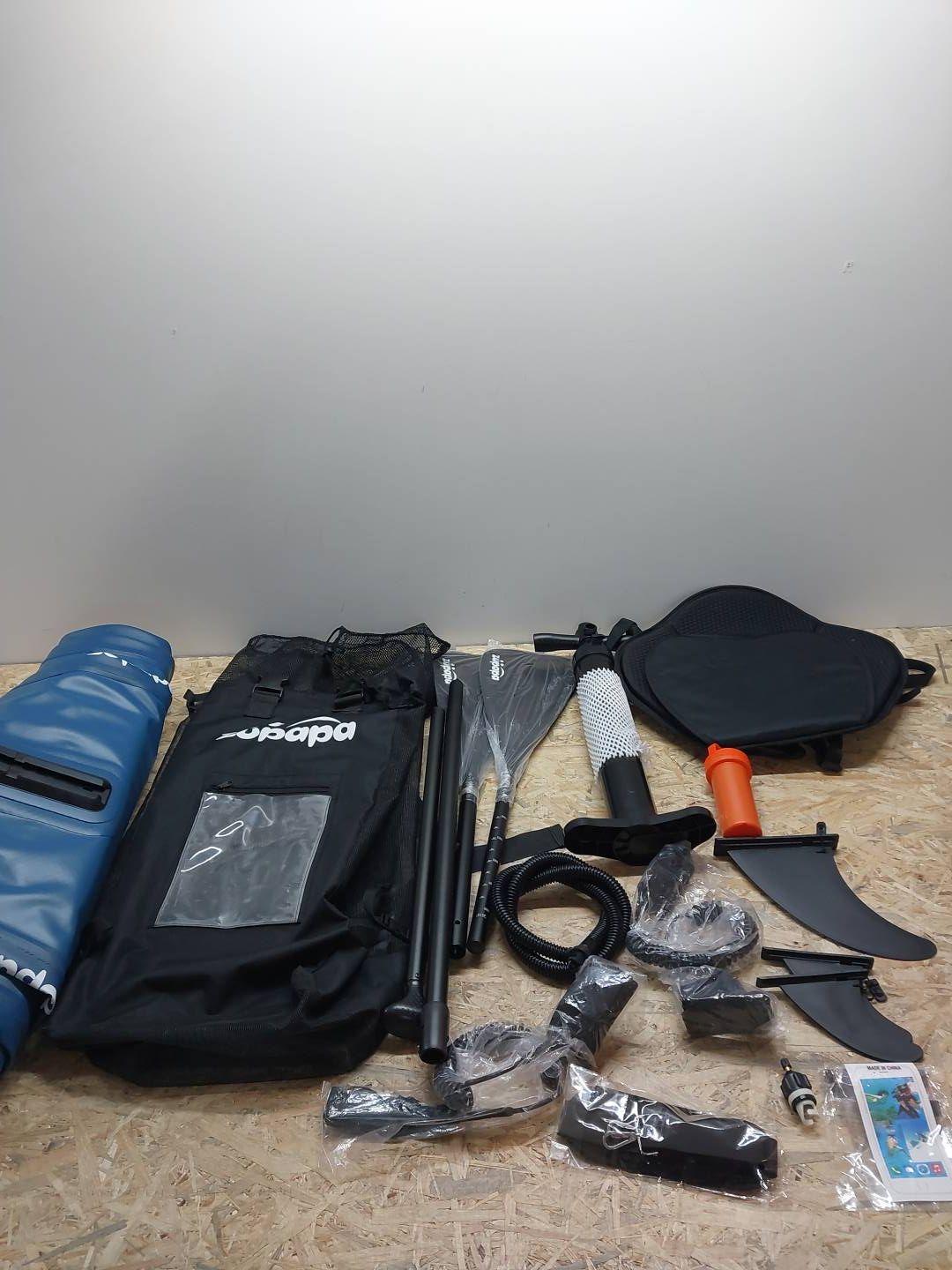 Pasek i plecak: Trzyczęściowy pasek na ramię i uchwyt umieszczony pośrodku deski umożliwiają noszenie deski na krótkich dystansach po użyciu. Dodatkowo solidny plecak zapewnia możliwość bezpiecznego przechowywania i transportu złożonej deski SUP, pompy wysokociśnieniowej, wiosła i zestawu naprawczego.