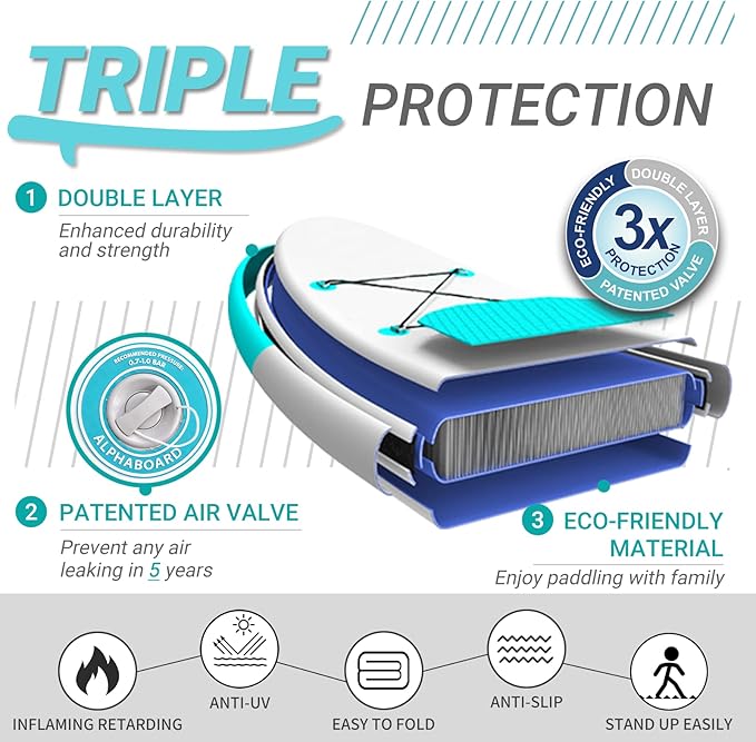 Dobra zwrotność i zmiana kierunku: HEYBOARD SUP jest idealny dla początkujących. Wyposażony jest w trzy stateczniki zapewniające precyzyjną i szybką obsługę. Niezwykle duży i głęboko wycięty pokład EVA zapewnia doskonałą odporność na poślizg i odprowadzanie wody. Doskonała stabilność dzięki grubości 15 cm i szerokości 79 cm, opływowe osiągi zapewniające niezwykłą kontrolę wiosła, idealne dla rekreacyjnych wiosłujących i pływających w tandemie. Pierścienie D ułatwiające konwersję na kajak.
