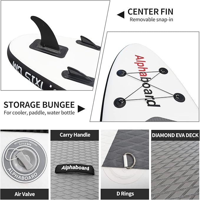 Zawiera 3-częściowe regulowane wiosło, pompkę wysokociśnieniową, pasek, wodoodporną torbę na telefon komórkowy, wyjmowaną płetwę itp. Pompka wysokociśnieniowa z czułym wskaźnikiem umożliwia łatwe i szybkie pompowanie. Przemyślany plecak oferuje miejsce na wszystko, czego potrzebujesz
