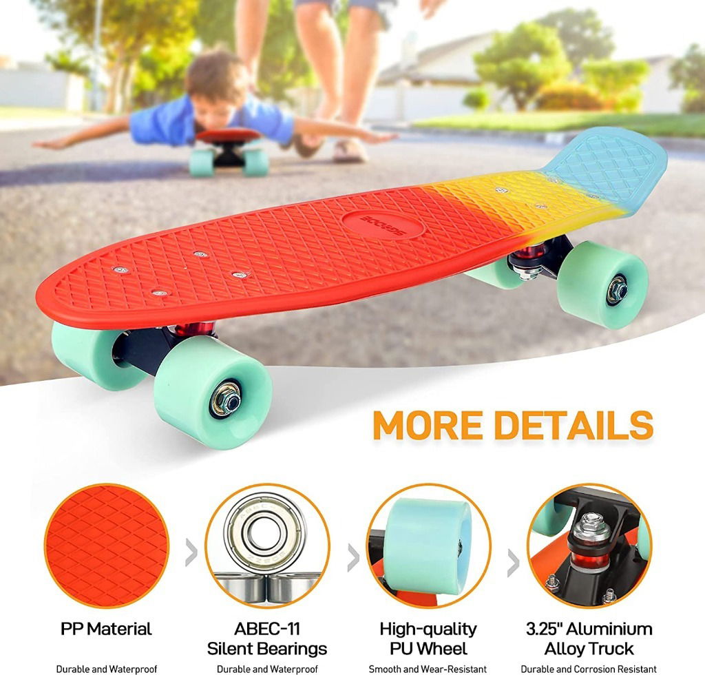 Deskorolka dziecięca, BRGOOD 22'' Mini Cruiser Deskorolki z kółkami LED, Deskorolki dziecięce dla początkujących. Dziewczęta Chłopcy Nastolatki Młodzież . kolor Pomarańczowy