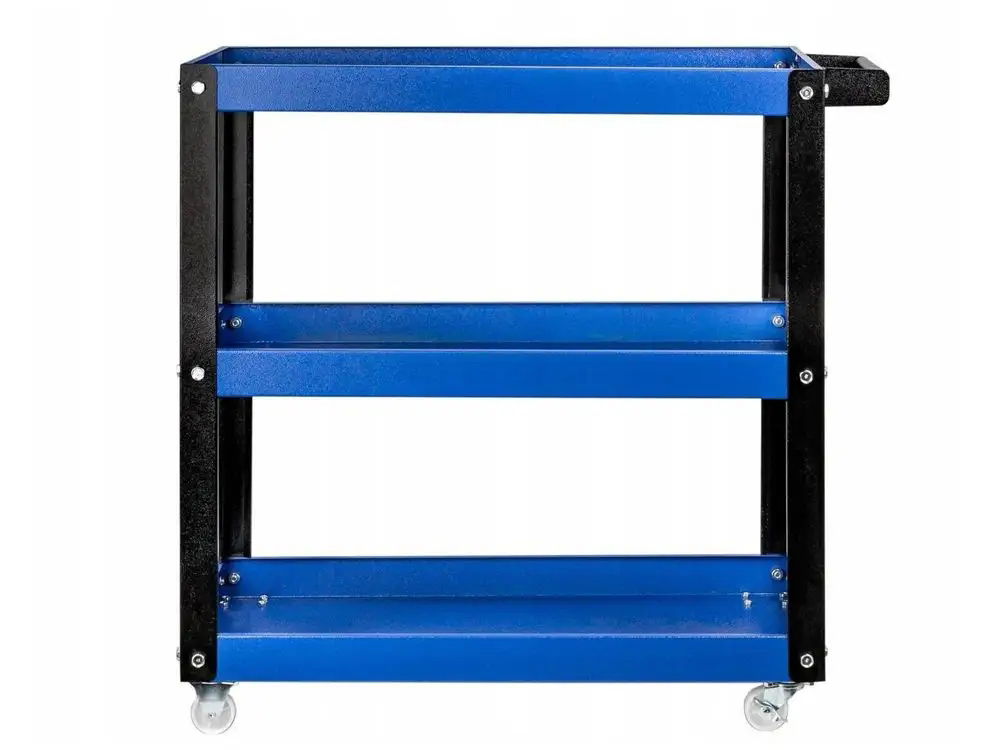 Szafka narzędziowa/wózek warsztatowy to niezbędne narzędzie w twoim garażu. Solidnie wykonany wózek z trzema metalowymi półkami pozwoli zachować porządek w warsztacie oraz przewożenie niezbędnych narzędzi do pracy. Dzięki zamontowanym kółkom możemy swobodnie ustawiać wózek w odpowiednim miejscu, kółka mają opcję blokady pozwalającej na unieruchomienie szafki na nierównym podłożu. Dwa z czterech kółek są obrotowe co daje nam swobodne kierowanie.
