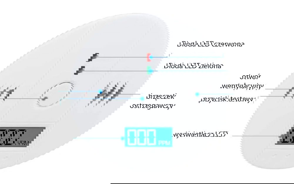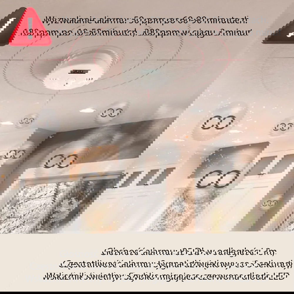 ✅ Natychmiastowy alarm dźwiękowy - głośny sygnał ostrzegawczy aktywuje się przy wykryciu niebezpiecznego poziomu CO
