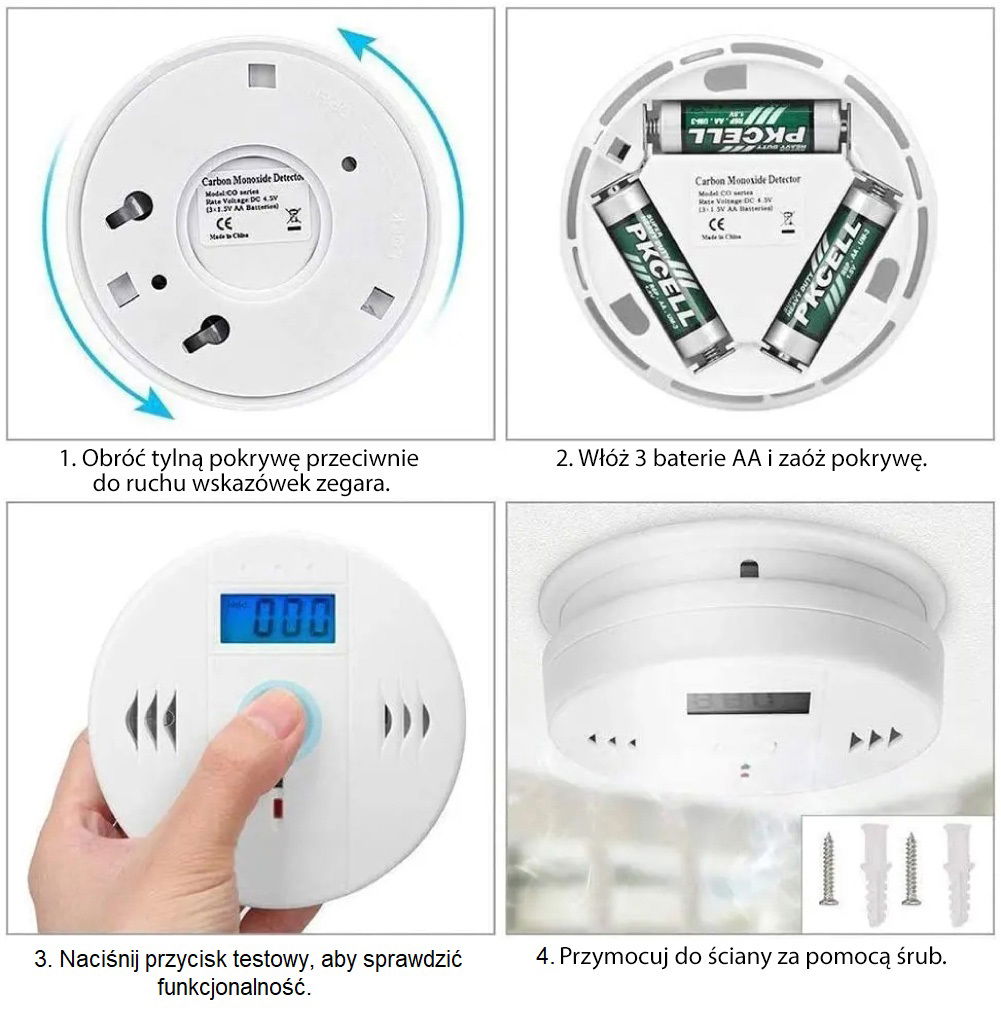 ✅ Przycisk testowy - wystarczy nacisnąć, aby sprawdzić działanie alarmu za pomocą sygnału dźwiękowego