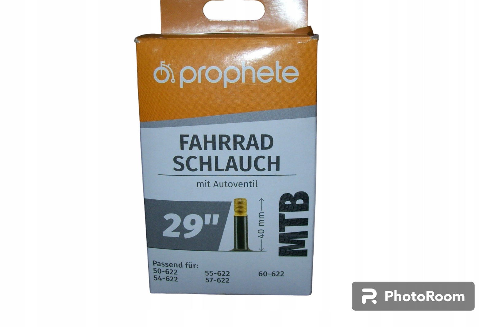 Dętka rowerowa z wentylem samochodowym firmy Prophete, dostępna do opcji opon 29 x 1,9-2,3 (50/60-622).