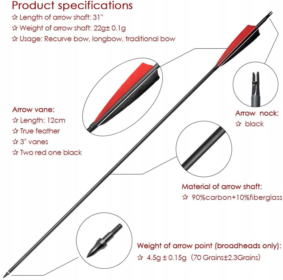 ⭐ Zestaw 12 karbonowych strzał 31” do łuków tradycyjnych