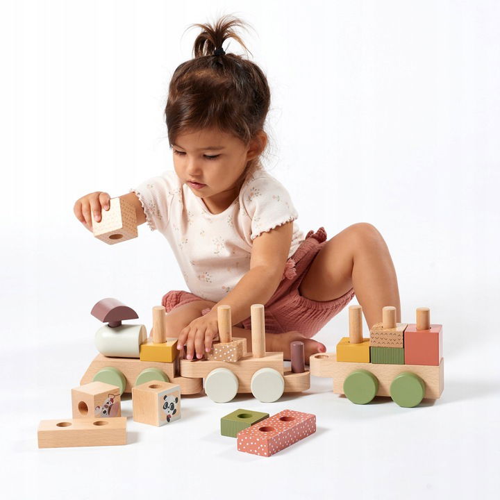 DEWNIANE KLOCKI POCIĄG ZABAWKA BOHO CHIC TINY LOVE