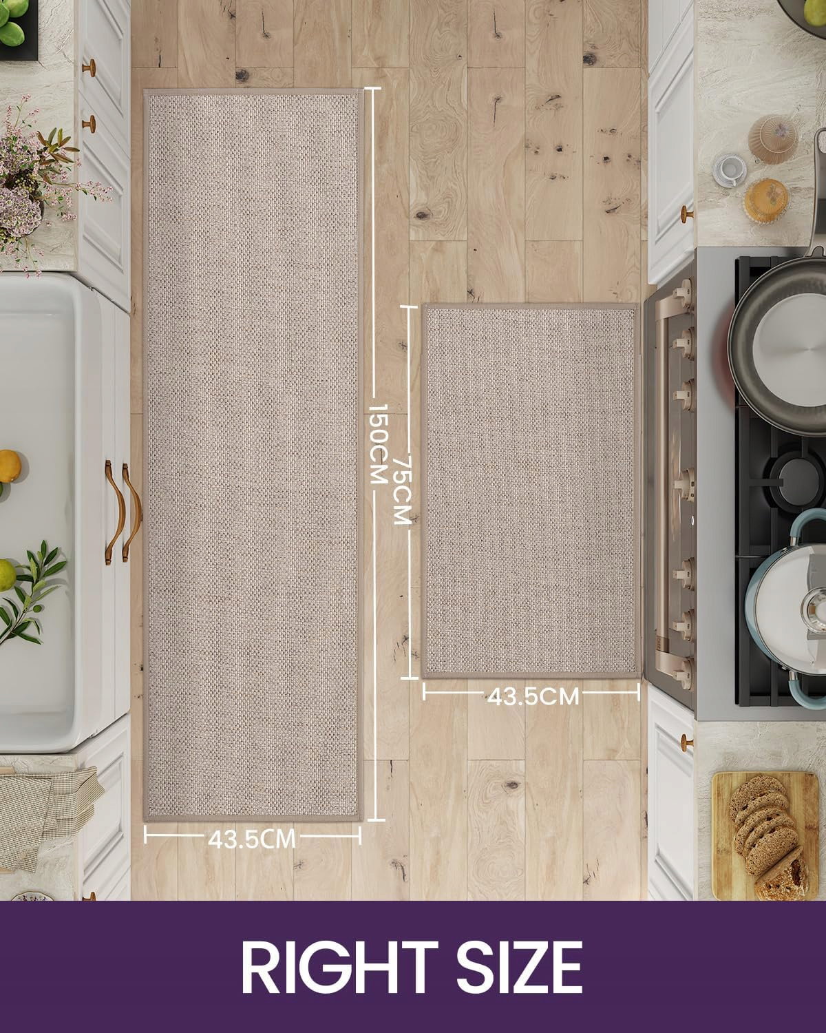 Zestaw 2-częściowy: Wymiary dywaników to 43 x 75 cm oraz 43 x 150 cm. Zestaw doskonale sprawdzi się jako mata stojąca na biurko, mata szefa kuchni, wycieraczka, dywanik do sypialni czy korytarza.