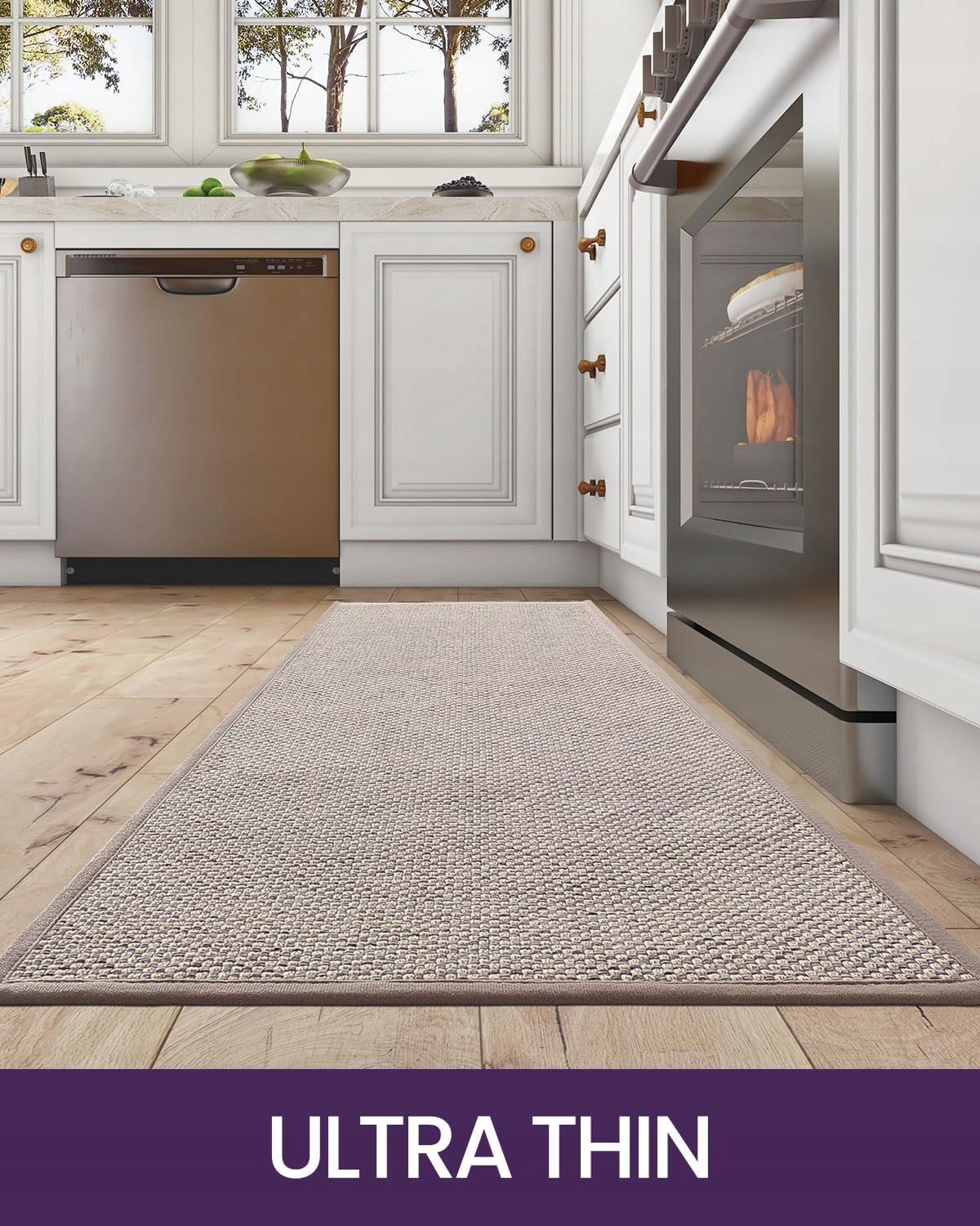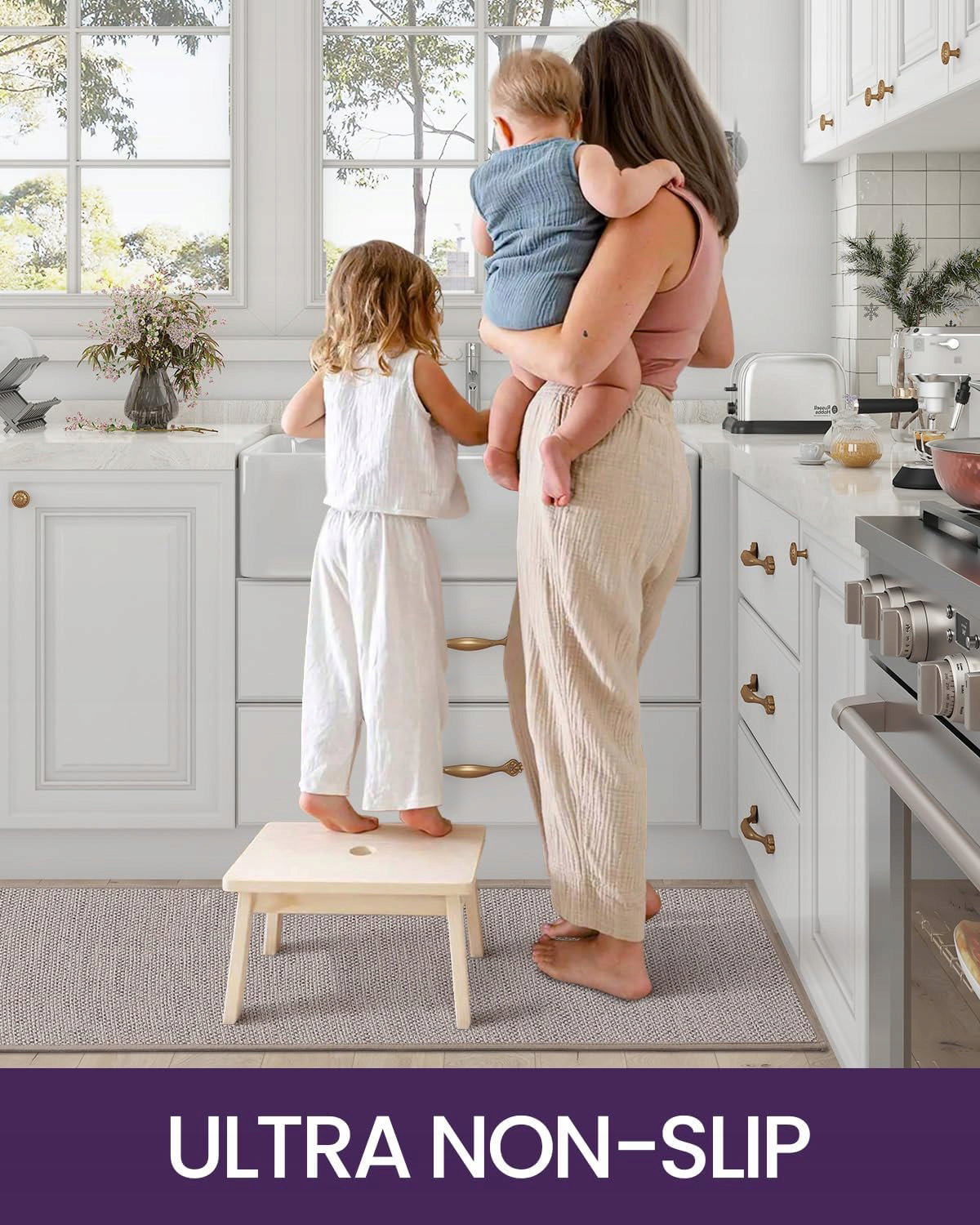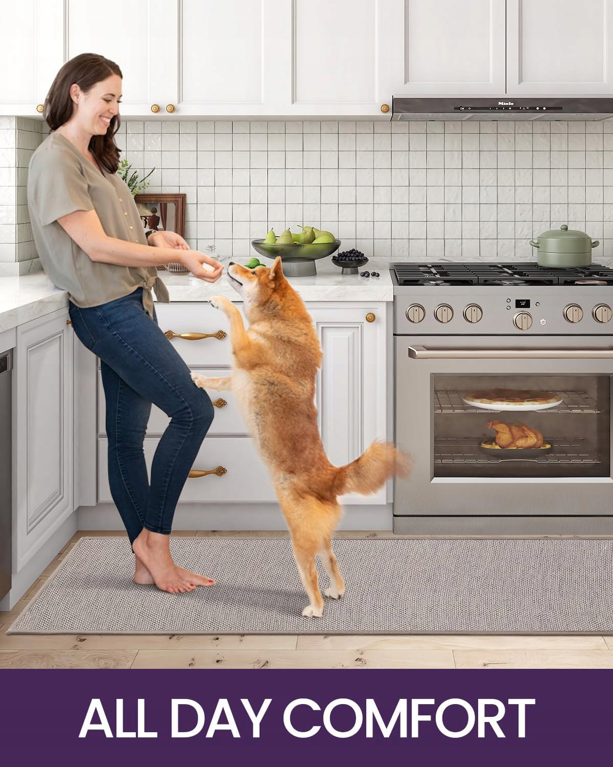 Antypoślizgowe dywaniki kuchenne: dywaniki kuchenne są wyposażone w antypoślizgowy gumowy spód, który stabilnie przylega do podłogi, zapobiegając przesuwaniu się maty i zapewniając, że pozostanie płasko na powierzchni.