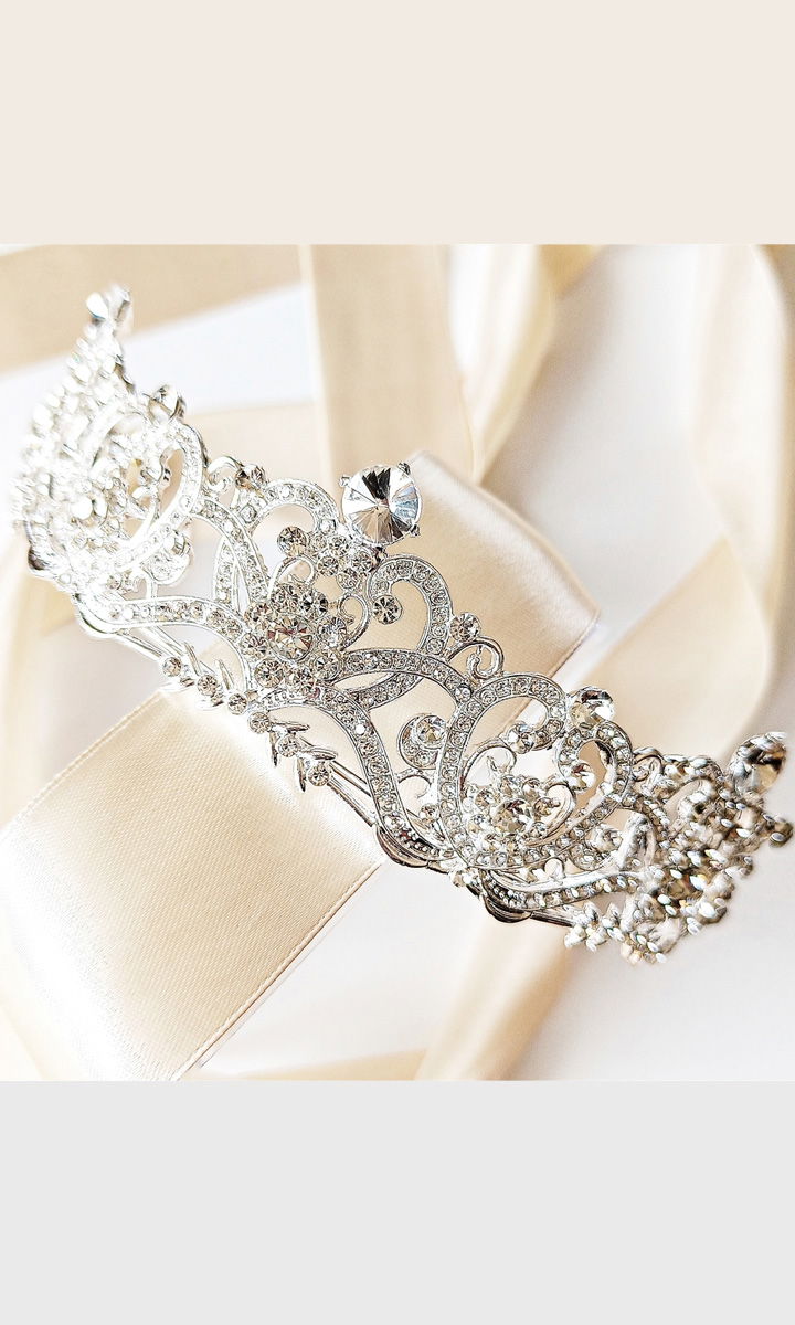 Diadem tiara korona srebrna ŚLUBNA elegancka wytworna klasyczna KSIĘŻNICZKA