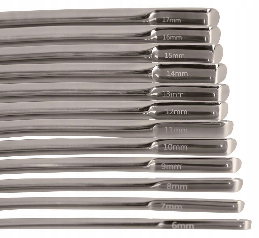 14-Piece Dilator Set by Penisplug z 14 dylatatorami ze stali nierdzewnej w eleganckim etui do przechowywania. Wszystkie dylatatory są wykonane całkowicie bezszwowo i gładko wypolerowane dla bezproblemowej stymulacji i noszenia. Z wygrawerowanym oznaczeniem średnica dla lepszego przeglądu. Każdy rozszerzacz ma zaokrągloną końcówkę ułatwiającą wprowadzanie oraz spłaszczoną rączkę zapewniającą pewny chwyt.