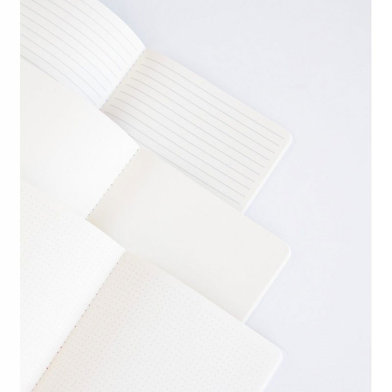 Każdy z zeszytów ma różne formaty wnętrza: w linie, w kropki oraz gładkie, co sprawia, że idealnie nadają się do robienia notatek, rysowania czy planowania.