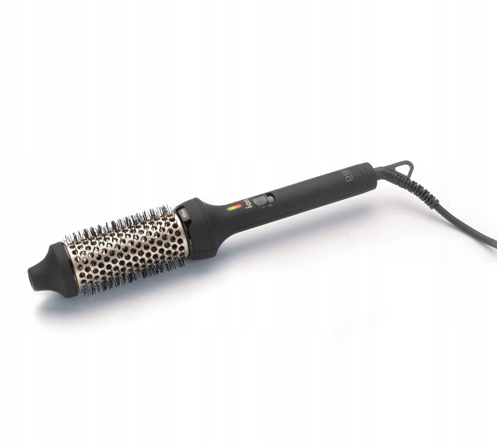 Diva Radiant Ceramic Hot Brush 40 mm Diva Pro Ceramic Heat Brush (40 mm) to fantastyczna szczotka grzewcza, za pomocą której można nie tylko stworzyć piękne loki lub fale na włosach, ale także piękną objętość. Zawsze chciałeś mieć tak piękne i obszerne falowane fryzury? Ta szczotka termiczna jest ceramiczna i zawiera również olej makadamia, olej arganowy i keratynę. Ta specjalna technologia MAK zapewnia, że rezultat będzie ultra lśniący, niepuszący się i gładki z profesjonalnym wykończeniem. Diva Pro Ceramic Heat Brush (40 mm) może być używana do układania włosów, na przykład tworzenia loków, fal lub ruchu we włosach. Ponadto tej ceramicznej szczotki można również używać w połączeniu z suszarką do włosów, aby jeszcze szybciej ogrzać włosy ciepła szczotka zawiera technologię jonową.Na szczotce znajdują się 2 pozycje, pierwsza pozycja jest bez technologii jonowej (czerwone światło), a najwyższa pozycja z technologią jonową (zielone światło).Technologia jonowa sprawia, że włosy są jeszcze gładsze, bardziej błyszczące i mniej statyczna. Ponadto wyeliminowane jest puszenie.