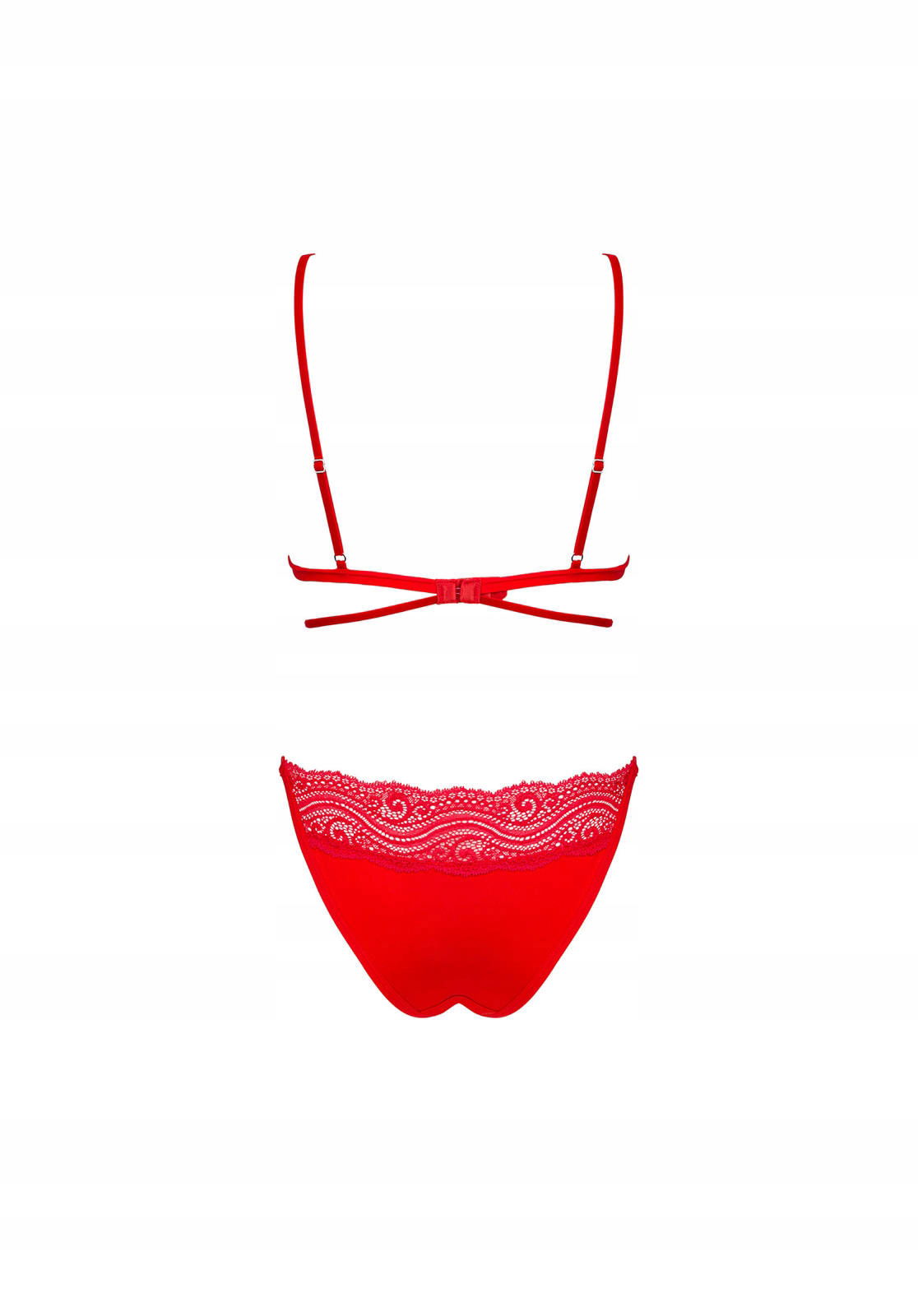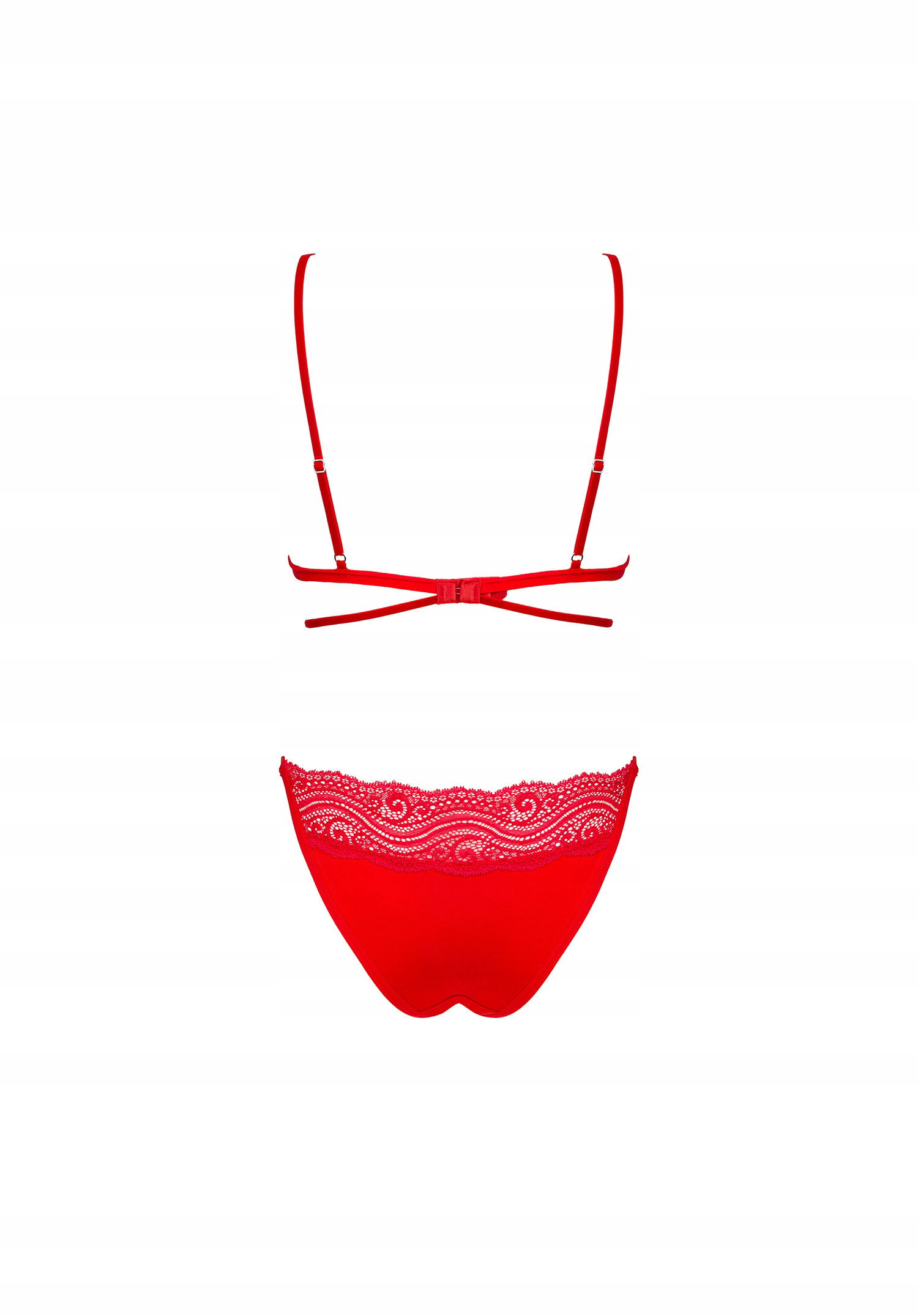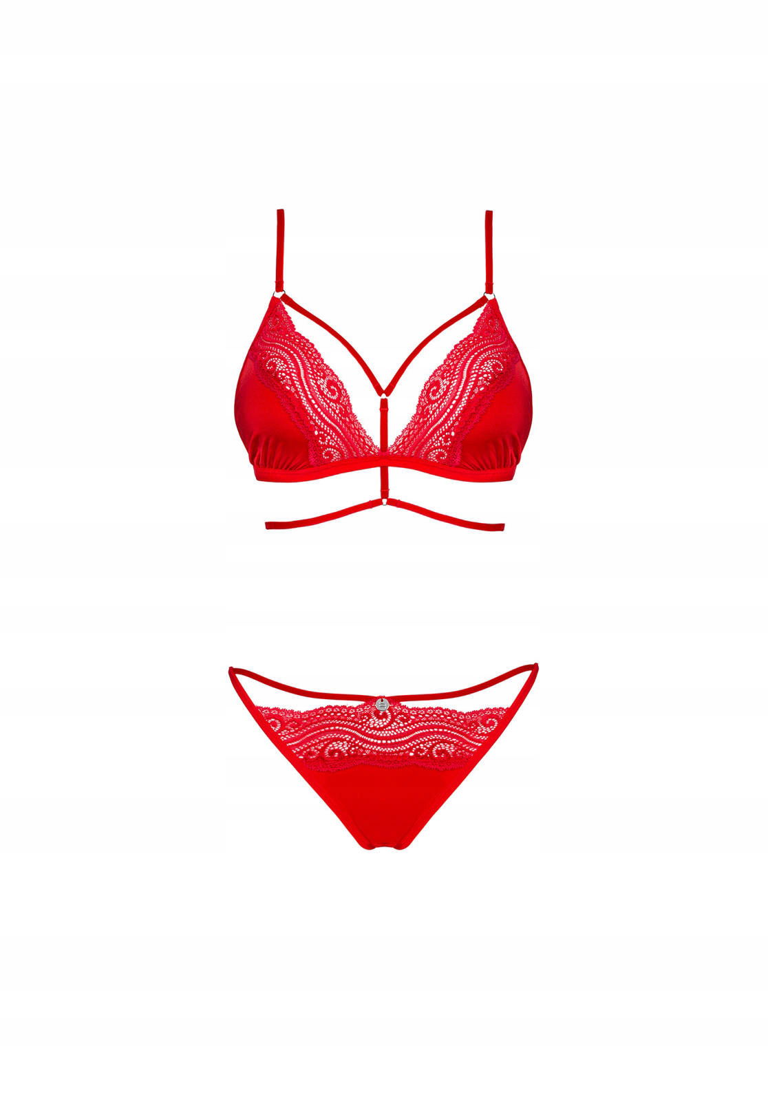 Boski biustonosz i figiLubisz perfekcyjną symetrię? Kuszący komplet sprawi, że wasze namiętności odnajdą się w złotej proporcji. Intensywna czerwień nie pozwoli Twojemu partnerowi oderwać od Ciebie wzroku. Delikatne wycięcia i prześwitujący materiał pobudzą Waszą wyobraźnię i zachęcą do odkrywania zakamarków Twojego ciała. W tej bieliźnie poczujesz się jak bogini! Przyjrzyj się z bliska:- zestaw Diyosa – biustonosz i majtki w kolorze dynamicznej czerwieni- symetryczne paski elastycznie dopasowują biustonosz do ciała, podkreślając kobiece kształty, a przy tym zapewniając duży komfort noszenia- regulowane ramiączka- uwodzicielsko prześwitujący materiał z elementami koronki- seksownie wycięte majki, udekorowane połyskującą zawieszką- przyjemny, delikatny materiał (85% poliamid, 15% elastan)