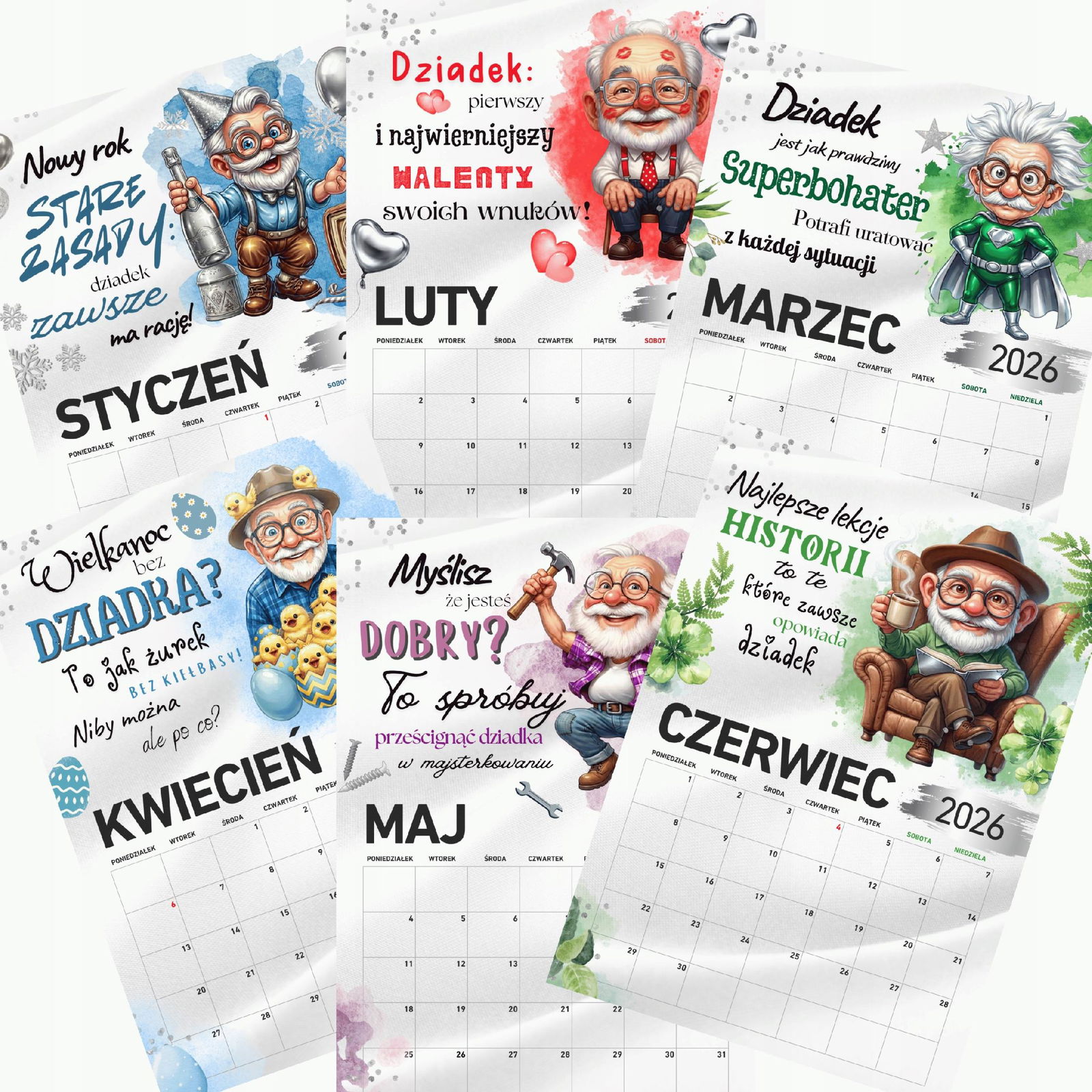 Kalendarz 2026 "Dla Najlepszego Dziadka" – Prezent, który wzrusza i cieszy!